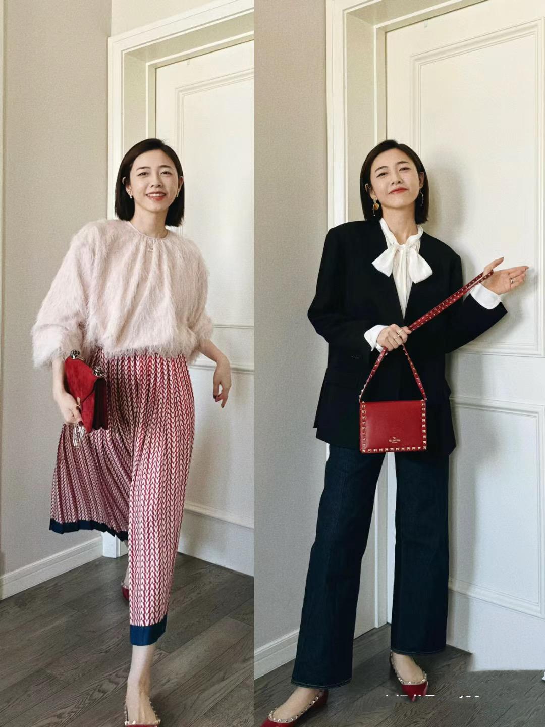 比如寬鬆的針織衫、或者寬鬆的毛衣、以及小廓形的西服外套、高腰的闊腿褲、百褶裙等單品,都可以更加隨意自由的組合,隨意一穿就優雅大方一點不會顯得土氣。