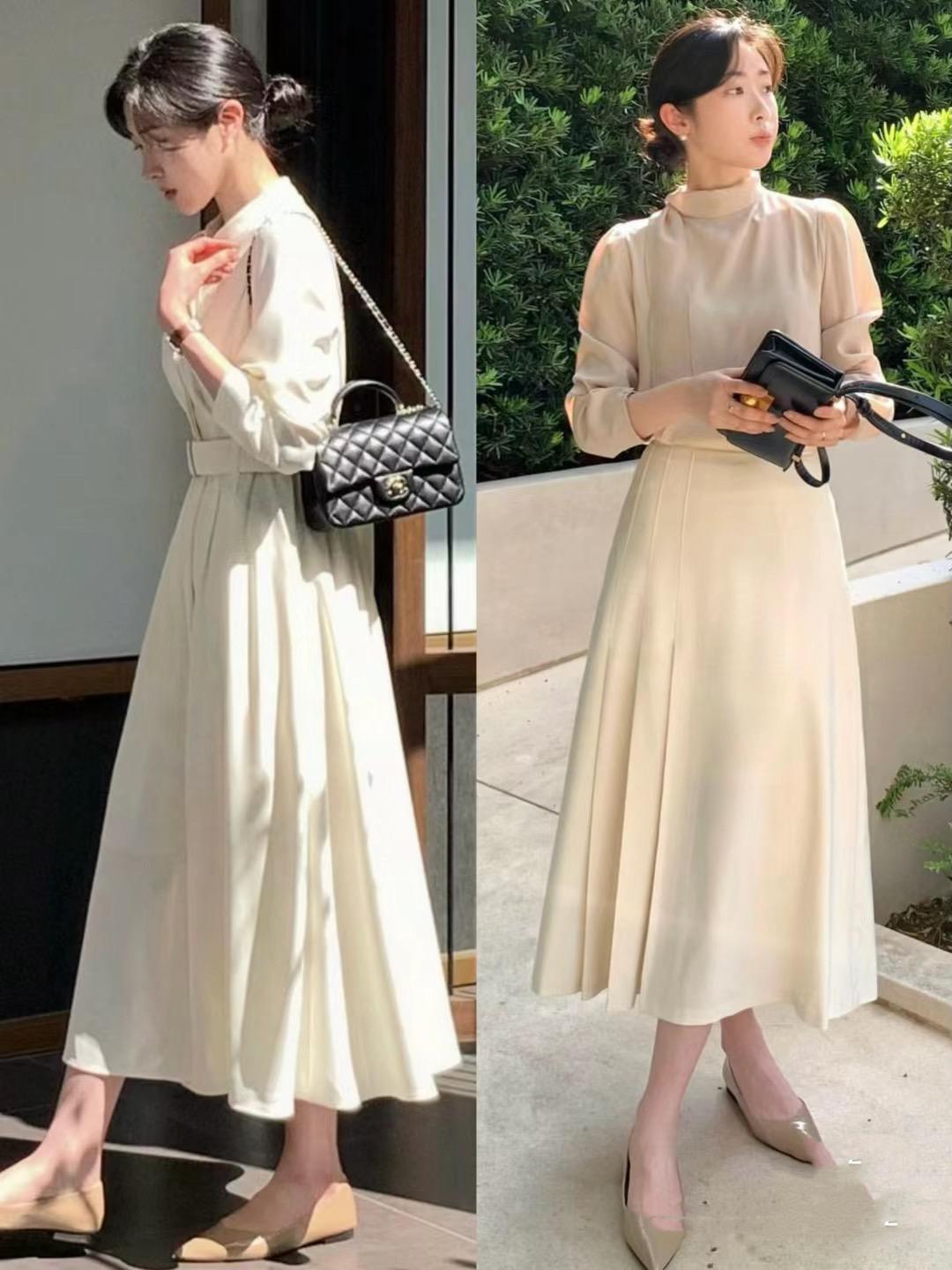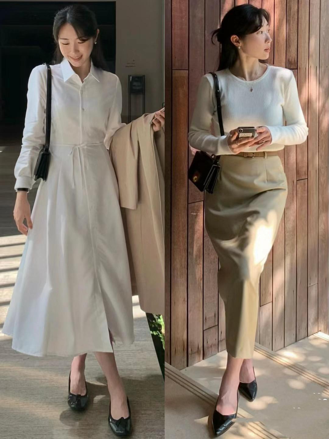 設計上比較簡約的襯衫、或者襯衫裙。相對修身、或者適度寬鬆但不邋遢的針織衫。高腰的過膝半身裙,舒適輕便的單鞋等等,都可以把韓系溫柔風格的魅力呈現。