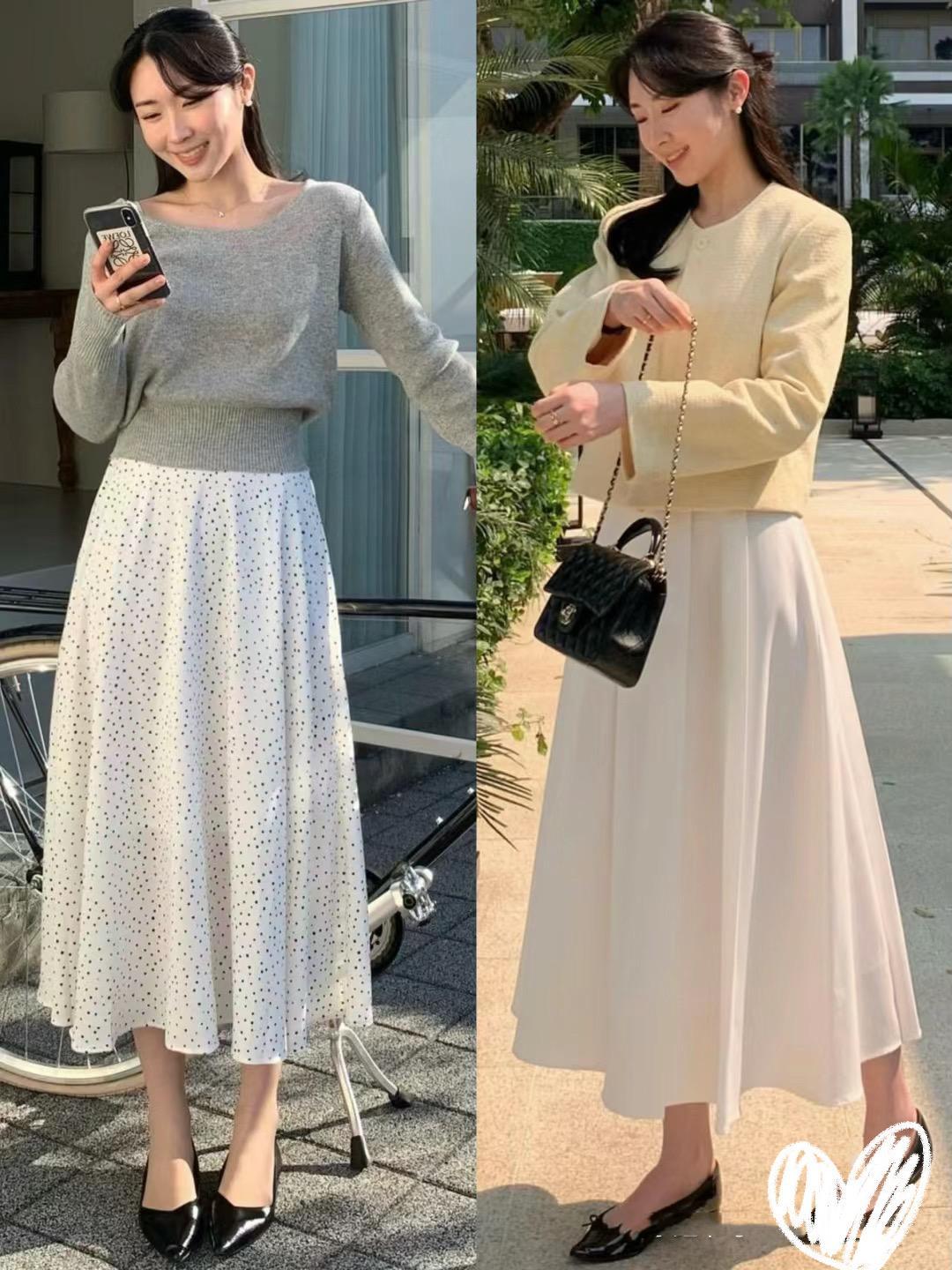 就像短款的針織衫,我們可以配高腰的半身裙。大波浪的裙襬,溫柔又顯氣質。一雙尖頭的單鞋,不浮誇又格外精緻,把韓系溫柔風的氛圍輕鬆拿捏。