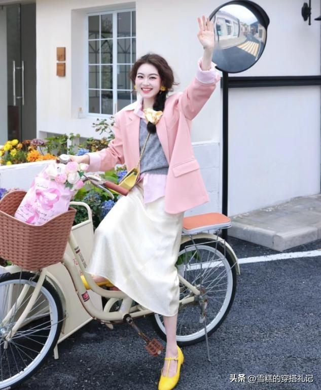 把這種櫻花粉色用在裙子上,越輕薄的面料越能彰顯出減齡可愛的一面,所以比較推薦真絲或者是雪紡質感,讓這種粉色展現出一種流光的質地,造型的氣質感讓你心心念念。