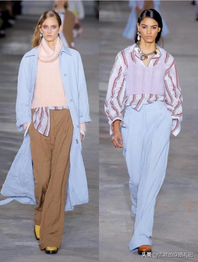 我們印象當中的T臺走秀,往往是一些不切實際場合的突兀穿搭,而且配色也非常的大膽,但是運用了早春的馬卡龍色系,服裝都會顯得秀氣很多,而且完全是暴力穿搭美學當中的一股清流,是實實在在可以運用在日常傳達當中的彩色。