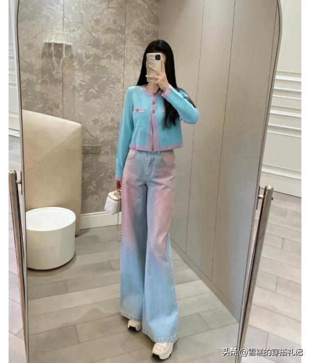 就算是造型當中的經典基礎款,選擇馬卡龍色系作爲配色,我們也可以穿出日常場合當中的時尚一面。就好比牛仔褲選擇馬卡龍色系漸變,絕對比單色系的褲裝更有看點,一件單色的針織衫,擺脫黑白灰和美拉德色調的陪襯,馬卡龍的彩色系自然成爲視覺的焦點。