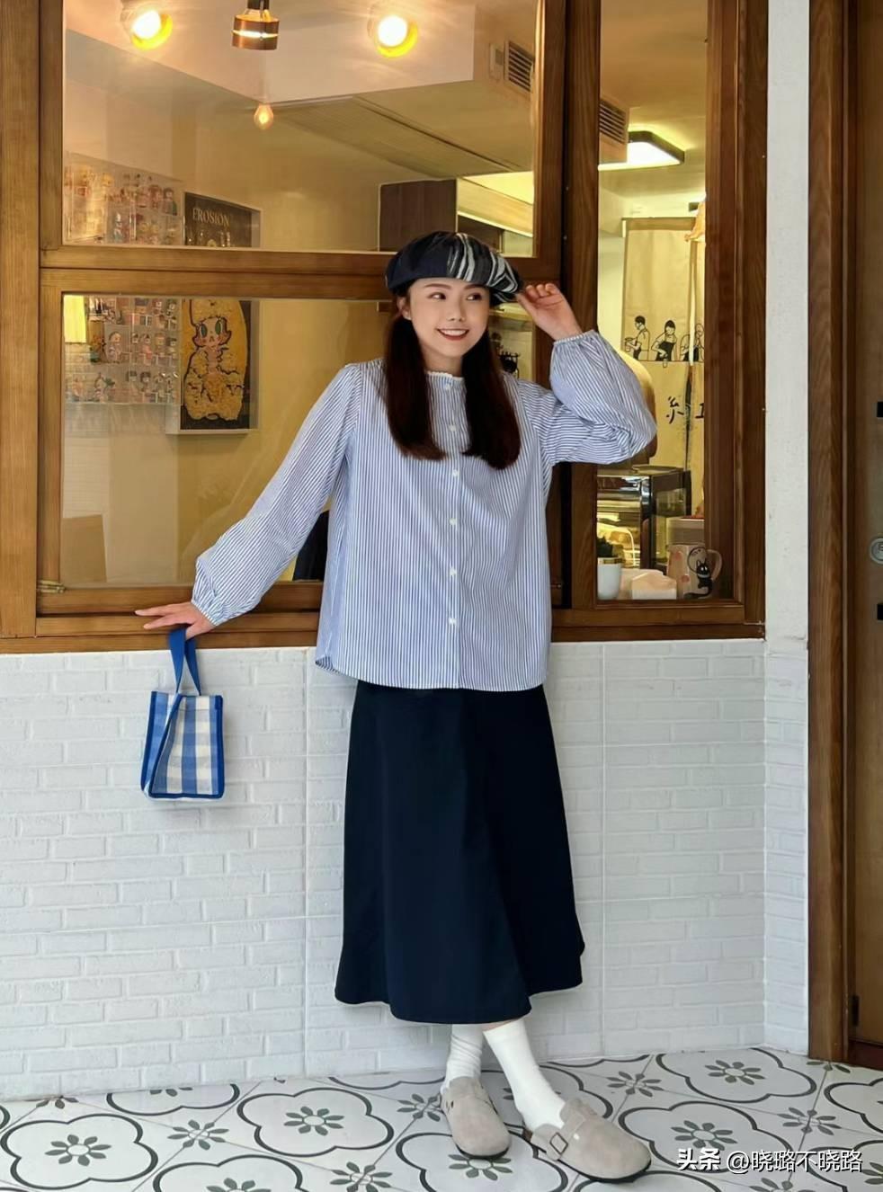 比如在上衣當中可以加入條紋元素,但上衣的款式要足夠基礎簡約,這樣纔不會顯得太突兀。橫向的條紋元素用於針織衫、T恤當中,縱向的條紋元素用於襯衫當中,再搭配直筒裙和黑色勃肯鞋,隨性中又透露着一絲灑脫感。