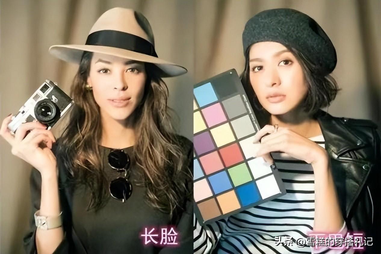 另外一種臉型問題比較明顯的就是臉寬或者臉圓的女性,因爲面部的橫向比例拉扯的太寬了,所以上鏡就很容易顯臉大,平常學會用髮型來做好面部線條的包裹感還不夠,我們要選擇縱深比較強的帽子來做好面部的修飾,最好能夠縮減額頭的寬度,更好的達到面部修飾的特效感。