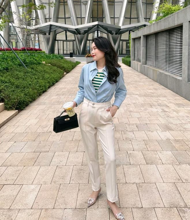 而對於日常休閒逛街的場合,襯衫+煙管褲的搭配就要注重休閒和舒適感,選擇淺色襯衫,搭配牛仔藍煙管褲,再配一雙運動鞋,就可以營造出輕鬆自在的效果。