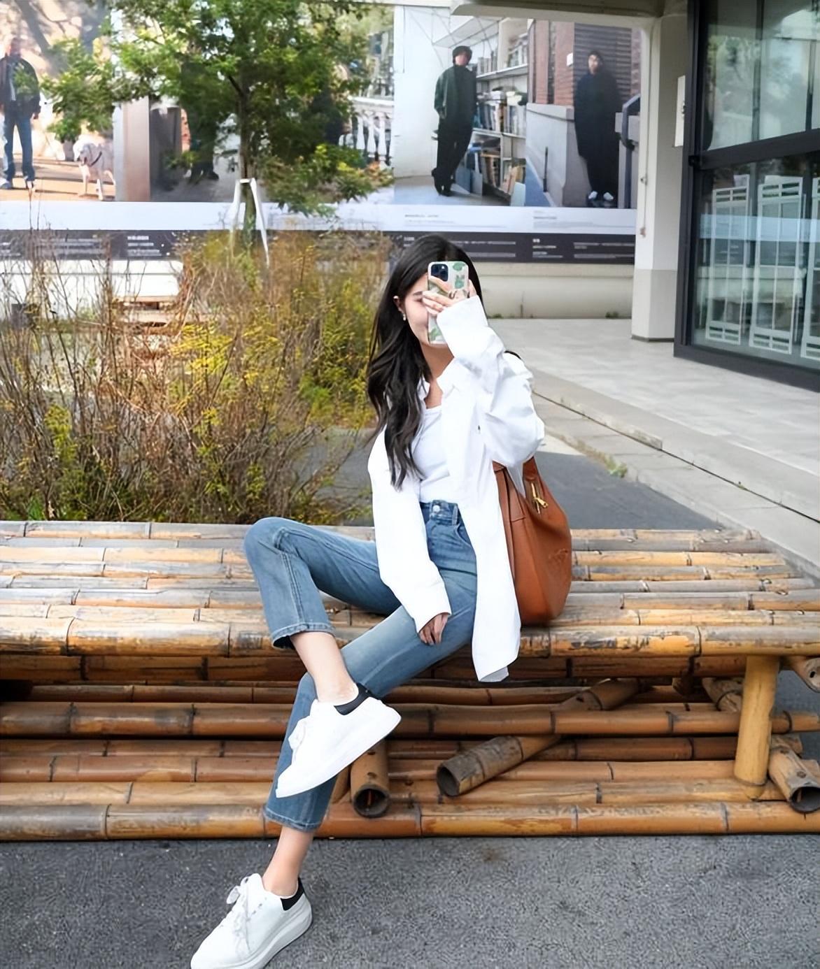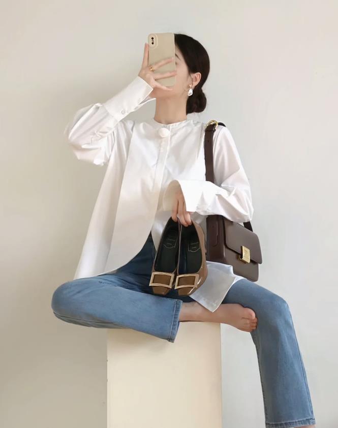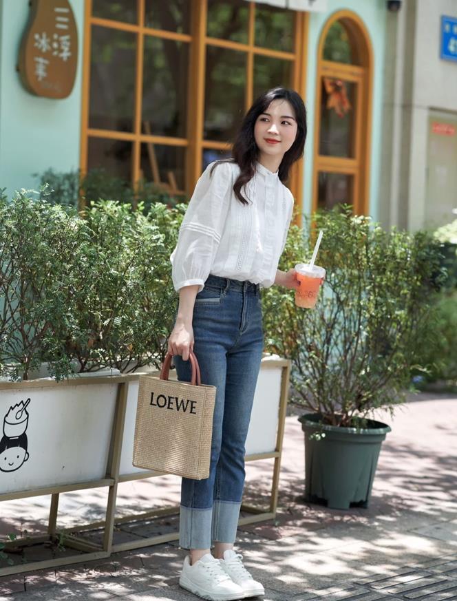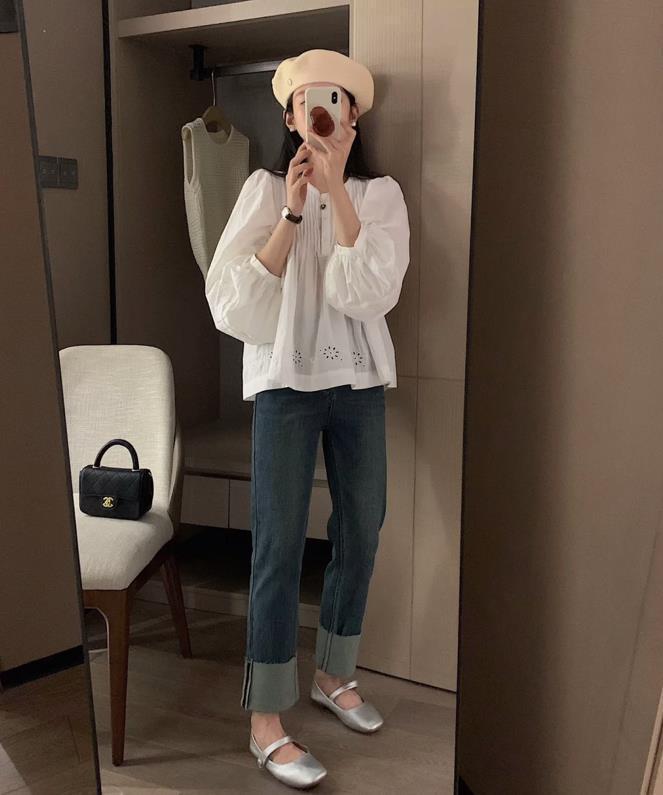 棉麻材質的法式白襯衫,自帶細節和氣質感的,適合春夏季節穿,搭配牛仔煙管褲+小白鞋,很舒服的一個穿搭,看似隨性漫不經心,實則是透着幾分大方慵懶的氣質。