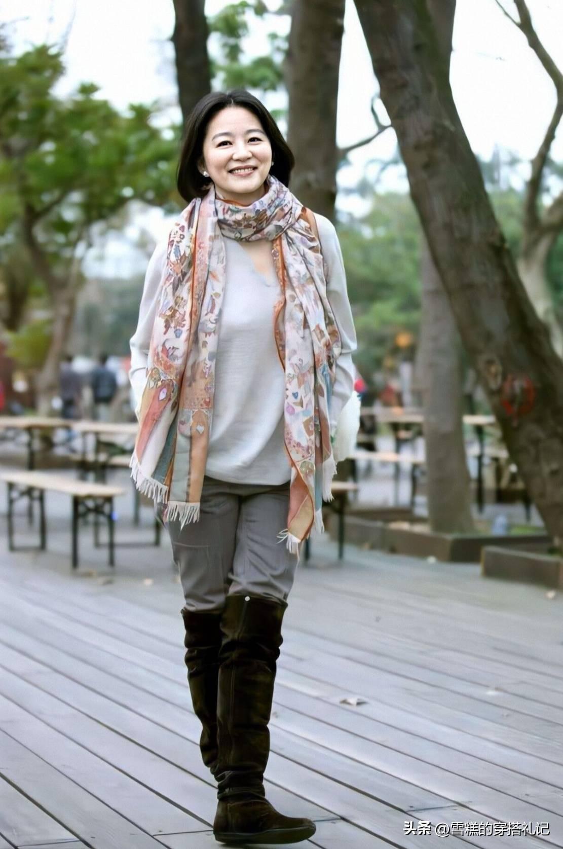 看了林青霞的穿搭之後,我才發現,原來穿衣顯身材不一定非得靠緊身衣,像這種下襬開叉的長款連衣裙,再搭配上一雙厚底短靴,照樣可以顯得身材高挑又修長。