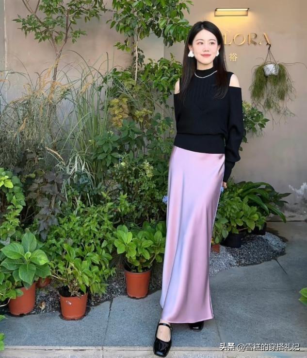 但是超強實用性的半身長裙仍然會成爲大部分女人的優選,特別是用來遮擋腿粗問題的時候,長裙的穿法就可以替代褲子的約束感,根據圖中的對比圖,我們就可以清晰的看到闊擺款式的長裙優勢感特別足。