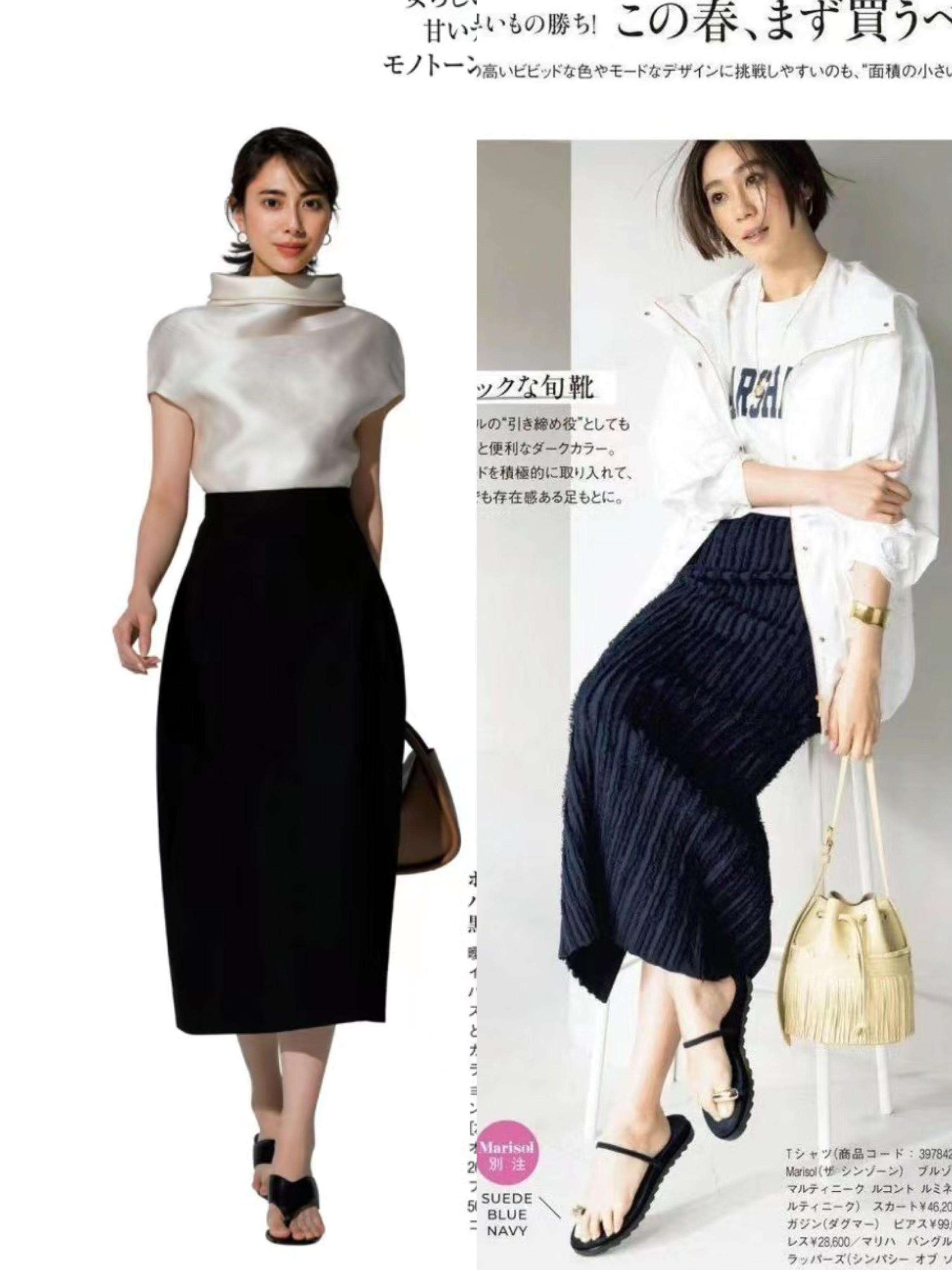 稍微寬鬆的直筒裙,搭配一雙舒適輕便的平底鞋。不僅更加耐看、減齡的效果也不錯。日常的搭配中,直筒半身裙可以配羅馬涼鞋、清新大方又具備了春日的鮮活感。