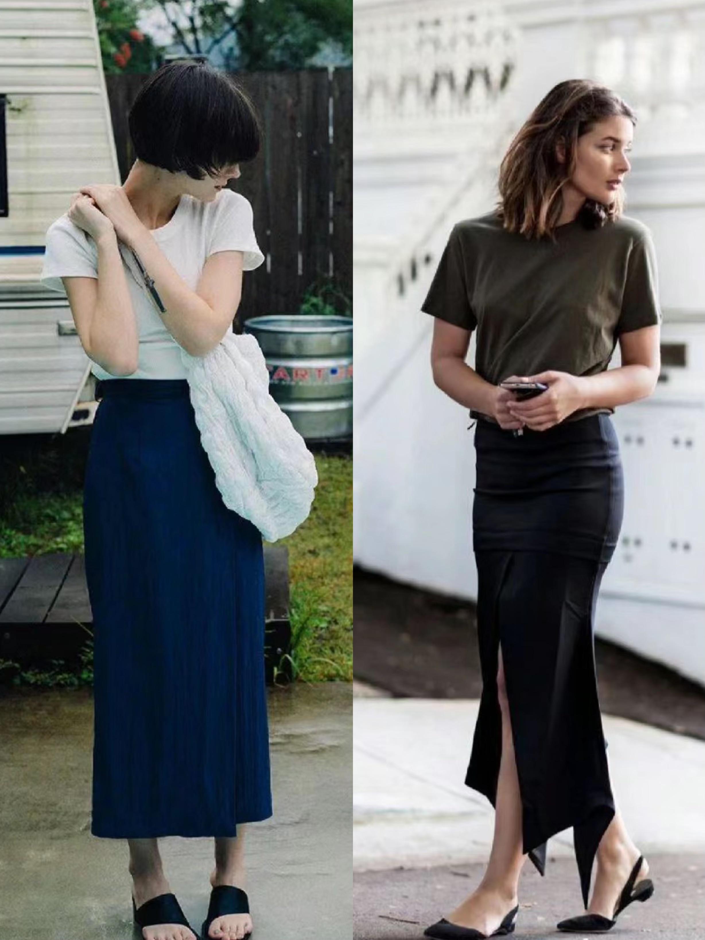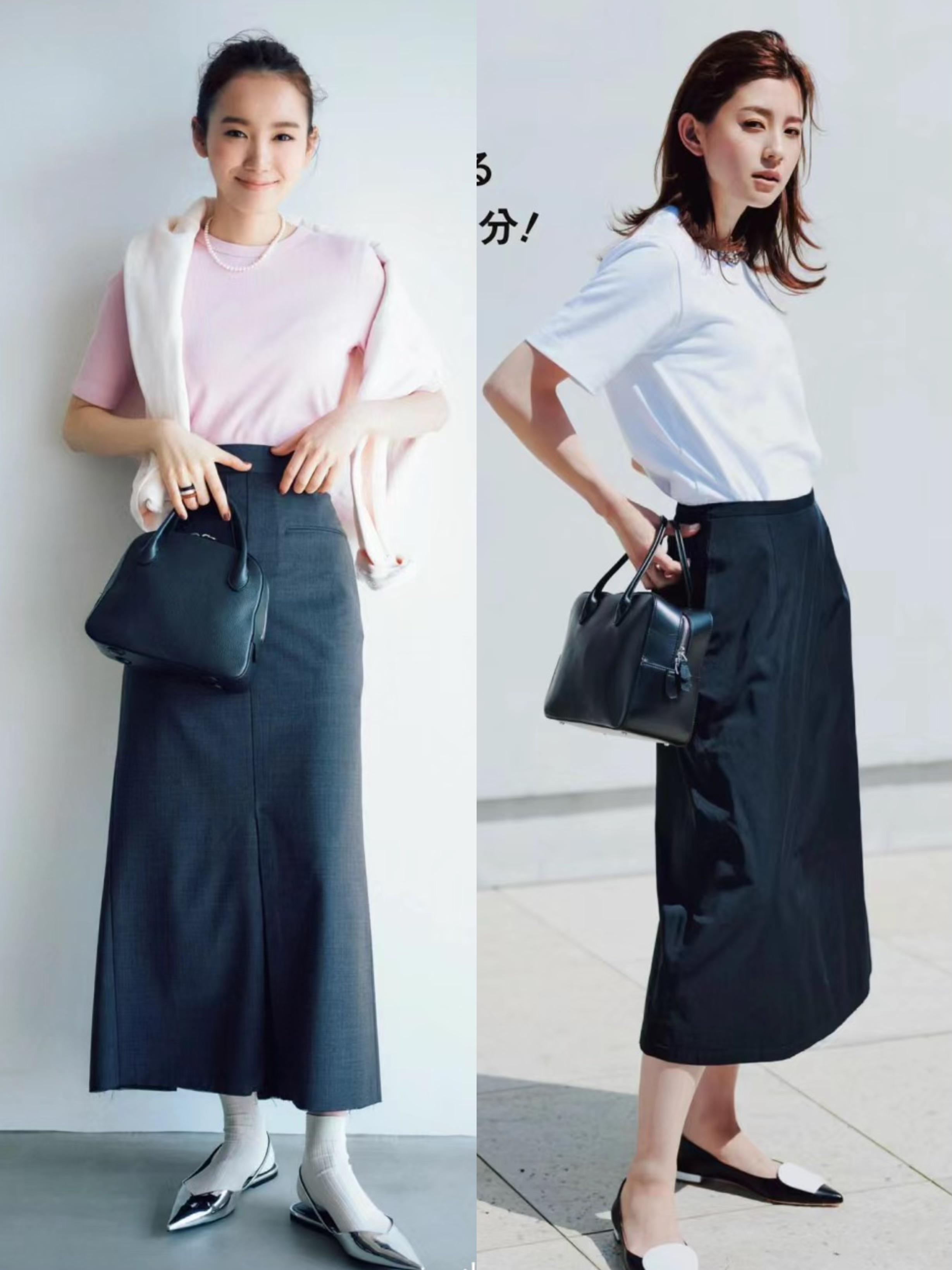 比如我們可以選擇相對修身的直筒半身裙,搭配上開叉的剪裁,配一雙尖頭的平底鞋,舒適輕便又時髦耐看。這種帶一點小性感的穿着方式,也更適合成熟女人。
