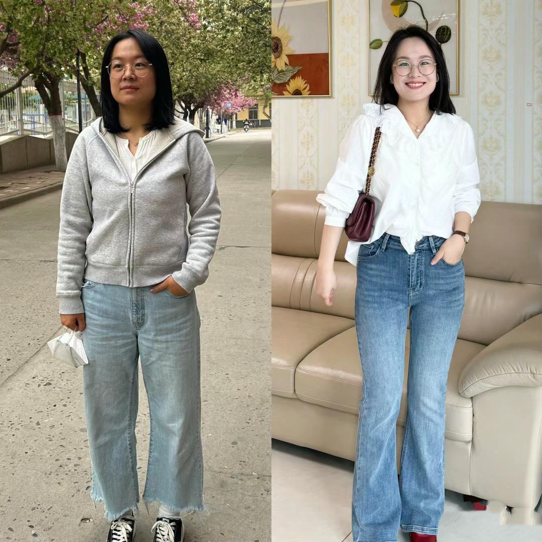 什麼是功能性比較強的單品呢?就是對於體型具有更明顯修飾性的服裝。比如高腰的微喇牛仔褲,不僅可以抬高腰線、拉伸腿長、還可以修飾大腿粗壯、胯部厚重。