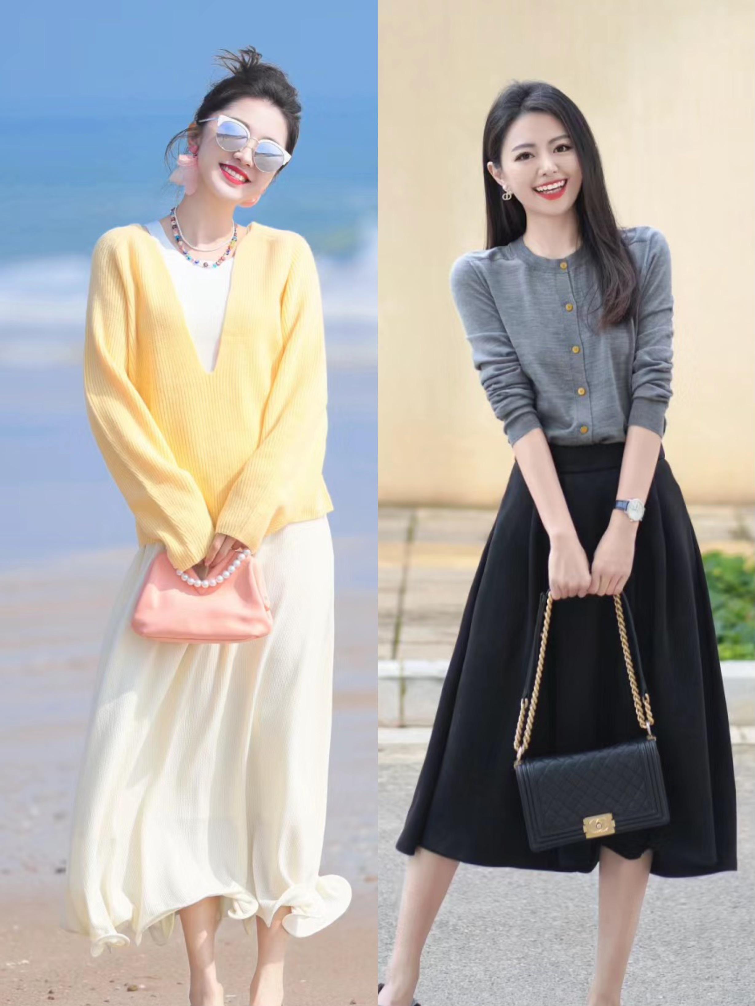 雖然同樣是針織衫+裙子的組合,但是不一樣的搭配方式就能滿足不同場合的需求。不管你喜歡低調的大方,還是喜歡優雅的醒目,都可以選擇針織衫+裙子的搭配。