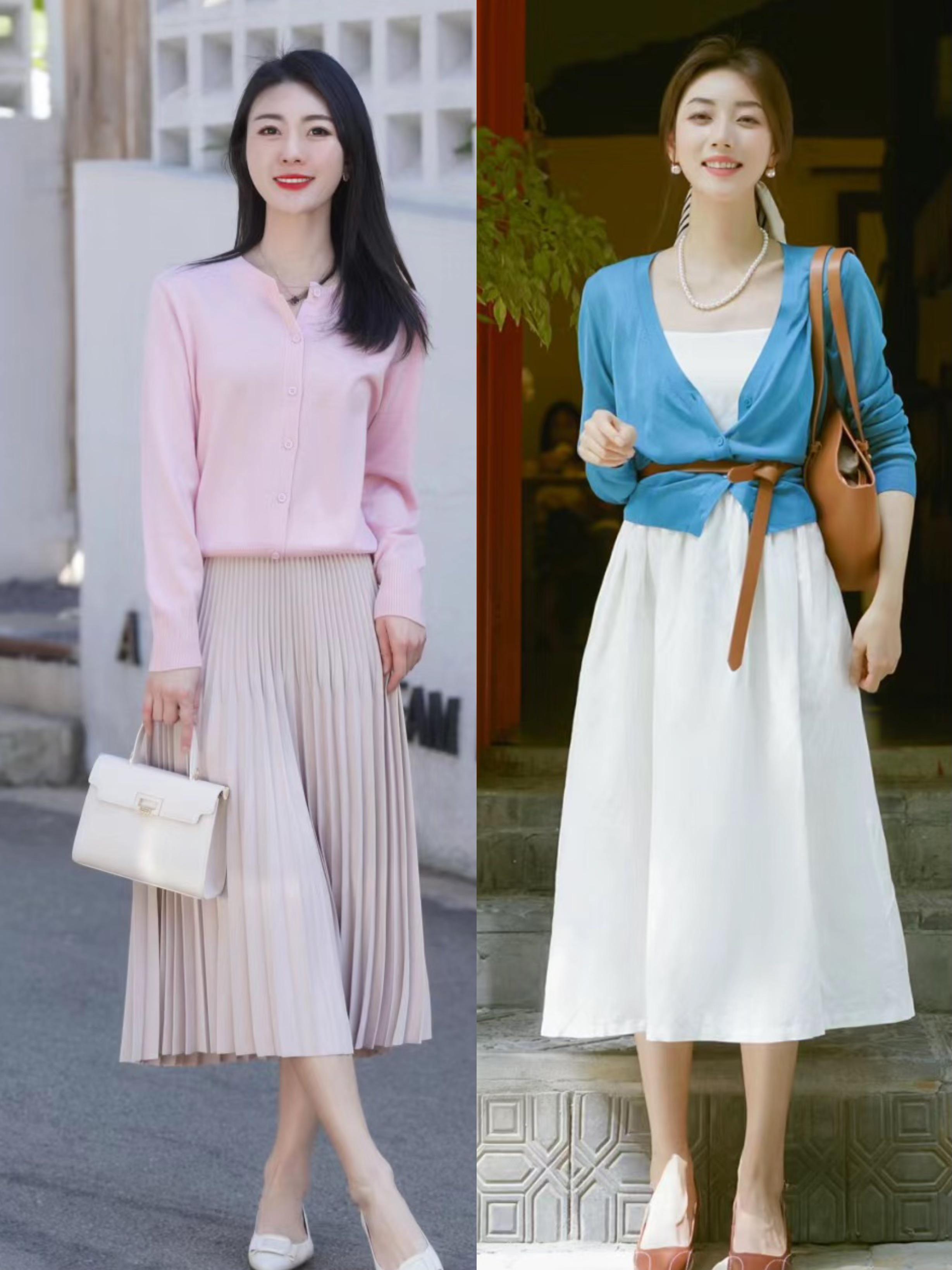 初夏流行一種穿搭,叫做:“針織衫+裙子”,溫柔優雅還提氣質