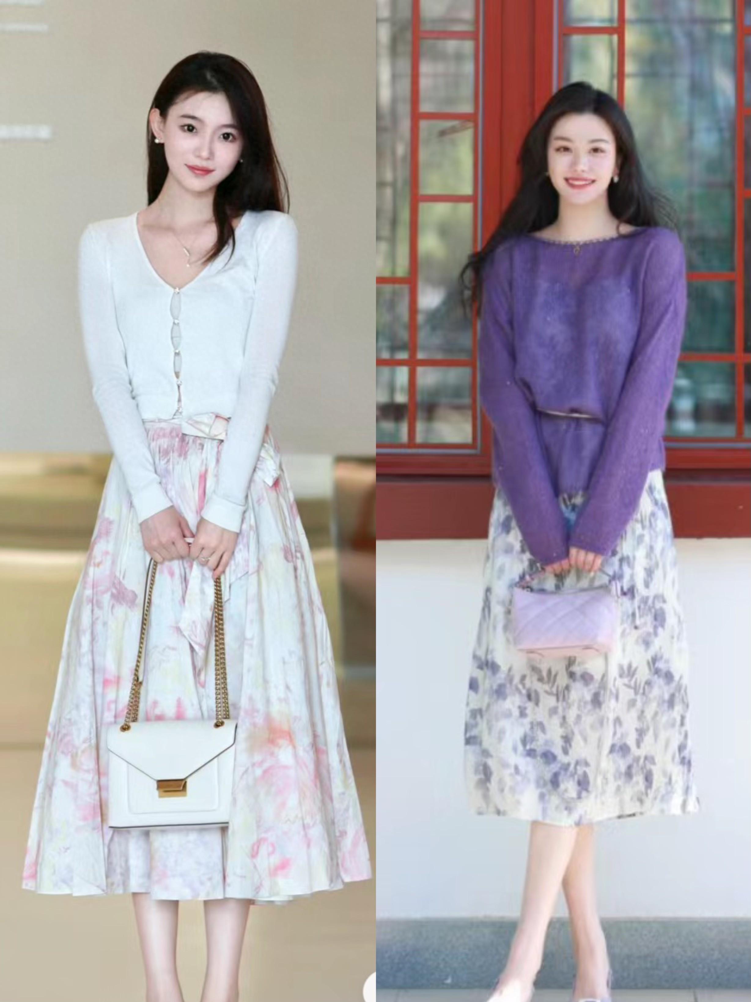春天裏的穿搭,自然不必那麼強勢冷冽。我們可以選擇更加溫柔嫺靜的搭配,塑造出甜美大方的姿態。比如針織衫配半身裙,就更加浪漫輕柔起來。