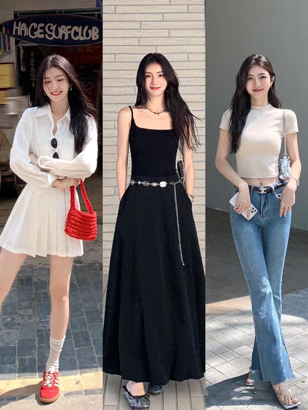比如經典的黑色小吊帶,就是一種非常顯瘦又輕盈的單品。像這種黑色小吊帶,我們可以搭配半身裙來穿着,一身黑色系清冷貴氣,顯瘦效果也是不錯的。