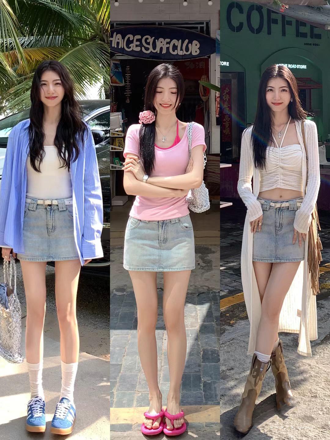 高腰的牛仔半身裙,我們可以搭配短款的背心來穿着。短款的小背心,不僅輕盈也更加熱辣醒目。有着傲人身材的女性,更適合這種性感風格的單品。