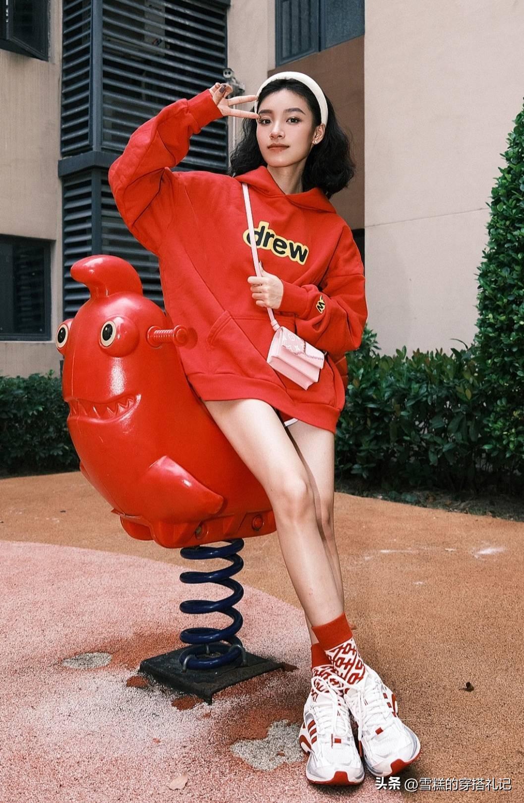 在整體的穿搭當中,色彩的運用影響力也是非常大的,尤其是在搭配寬鬆上衣的時候,我們所選擇的鞋子和配飾,色彩都應當有所呼應。