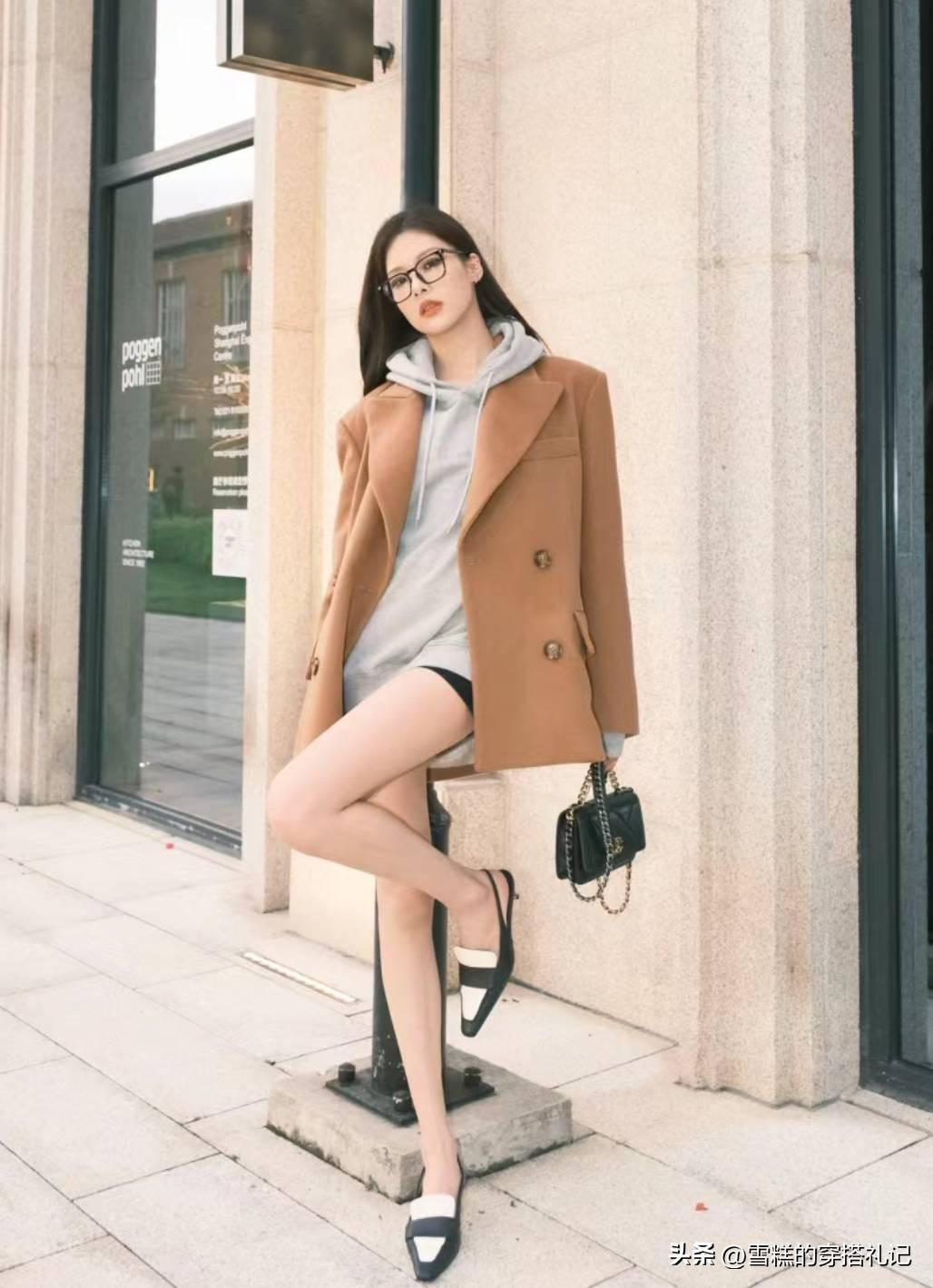 “下身失蹤裝”最需要關注的就是上衣的挑選,我們在選擇上衣的時候,一定不要輕易嘗試版型過於軟塌的款式,而是要優先選擇輪廓感明顯的單品,比如西裝、挺括衛衣、襯衫等等。