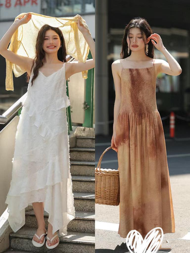 吊帶裙+人字拖,原來是一種如此浪漫輕盈的搭配方式。如果是身材輕盈的女孩子,或者需要外出度假的人羣,都可以選擇這樣的搭配。