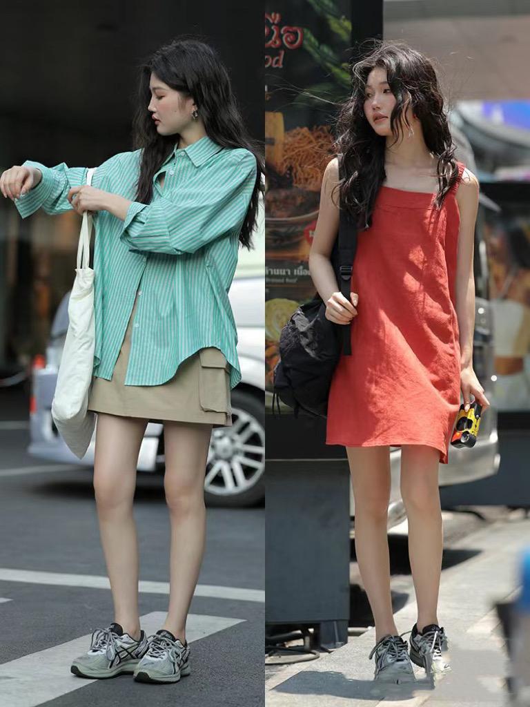 運動鞋可以選擇老爹鞋的款式,線條感更加流暢。一雙舒適輕便的運動鞋,搭配吊帶裙穿起來也非常的浪漫溫柔,時尚感更強。
