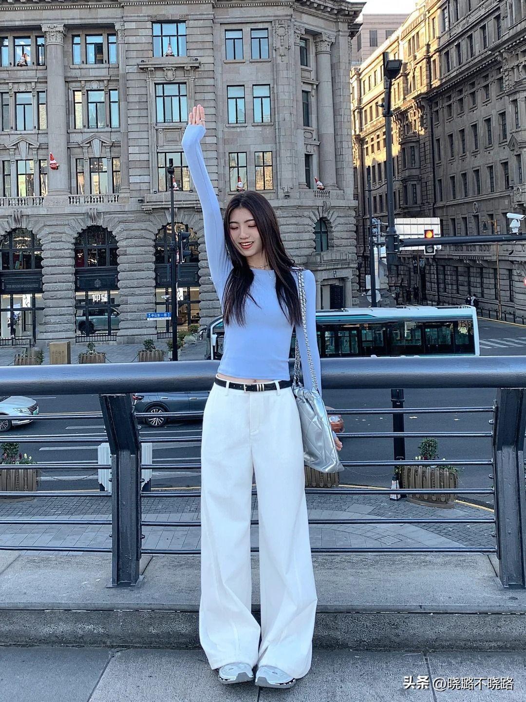 三、闊腿褲搭配顯瘦又顯高,單品組合注意延長縱向線條