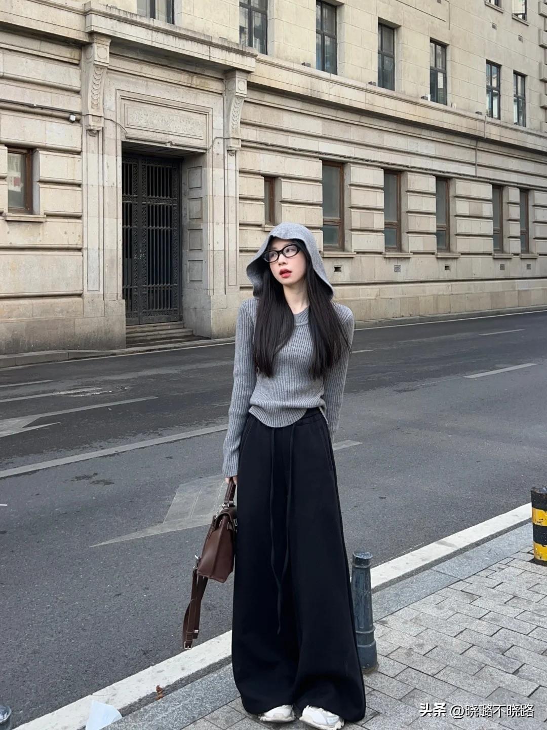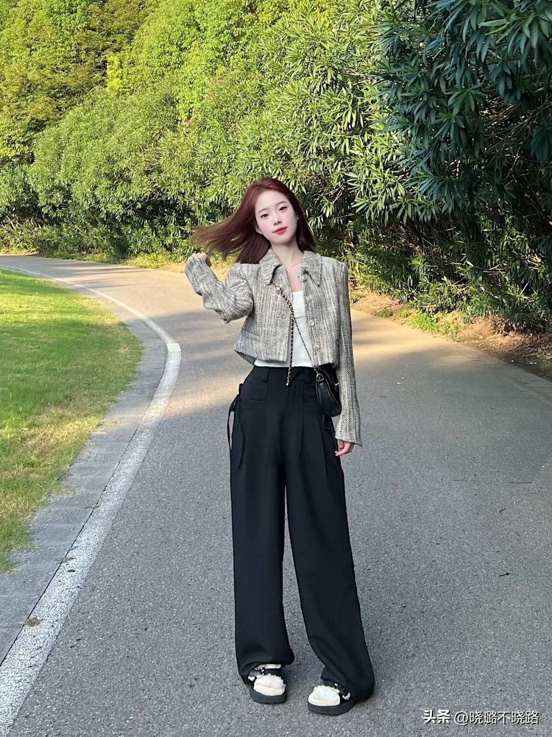 ·搭配組合:短款針織衫+黑色闊腿褲