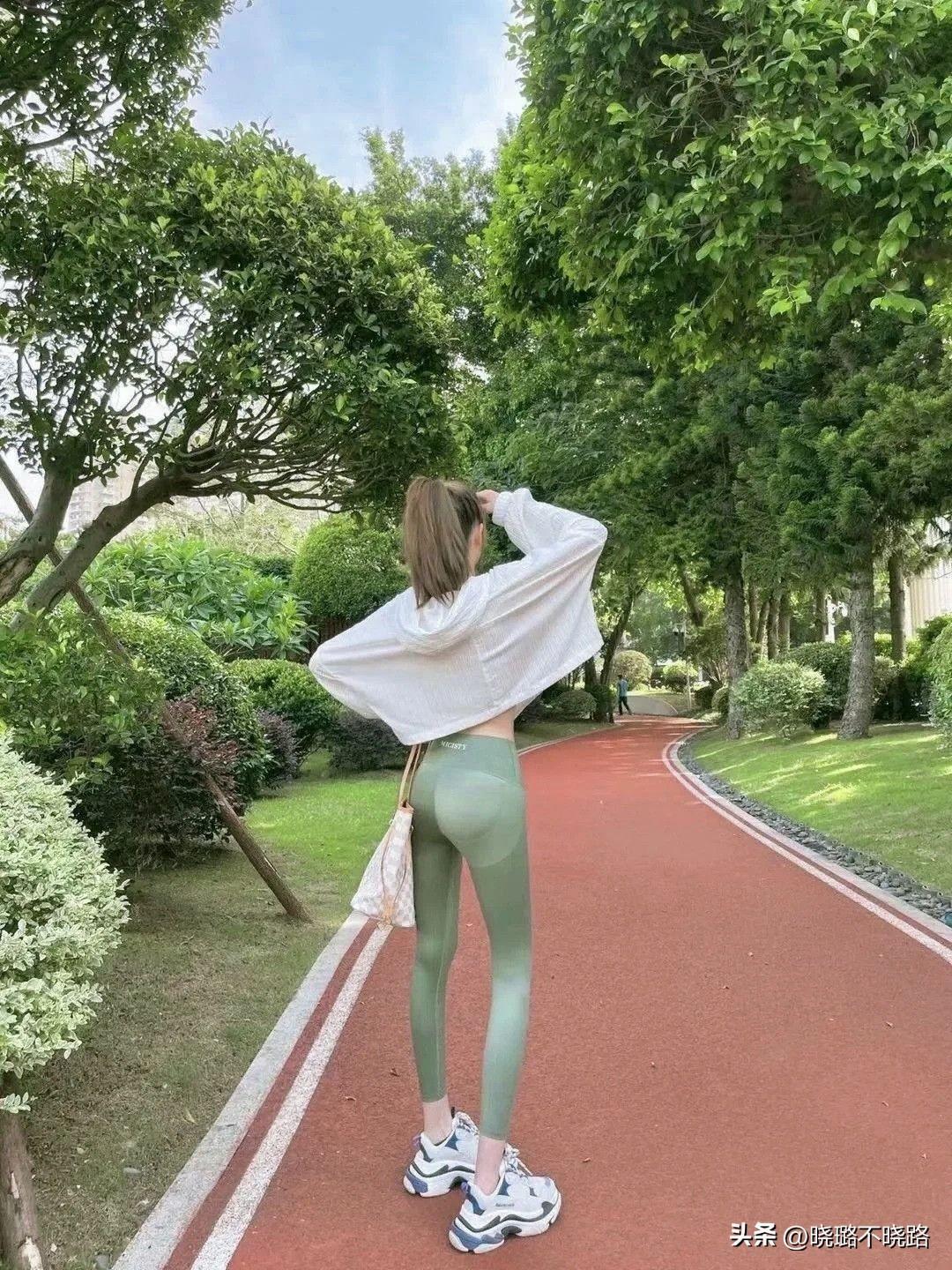 @注意三角區&臀胯遮擋:因爲瑜伽褲和肌膚之間的距離比較小,它會將身材的各個部位展示出來,尤其是三角區和臀胯的位置。如果線條流暢度不夠,建議大家利用偏長的衣身以及相對寬鬆的上衣幫助進行遮擋。如此一來,重點突出腿部線條有助於視覺上造更明顯的感覺。