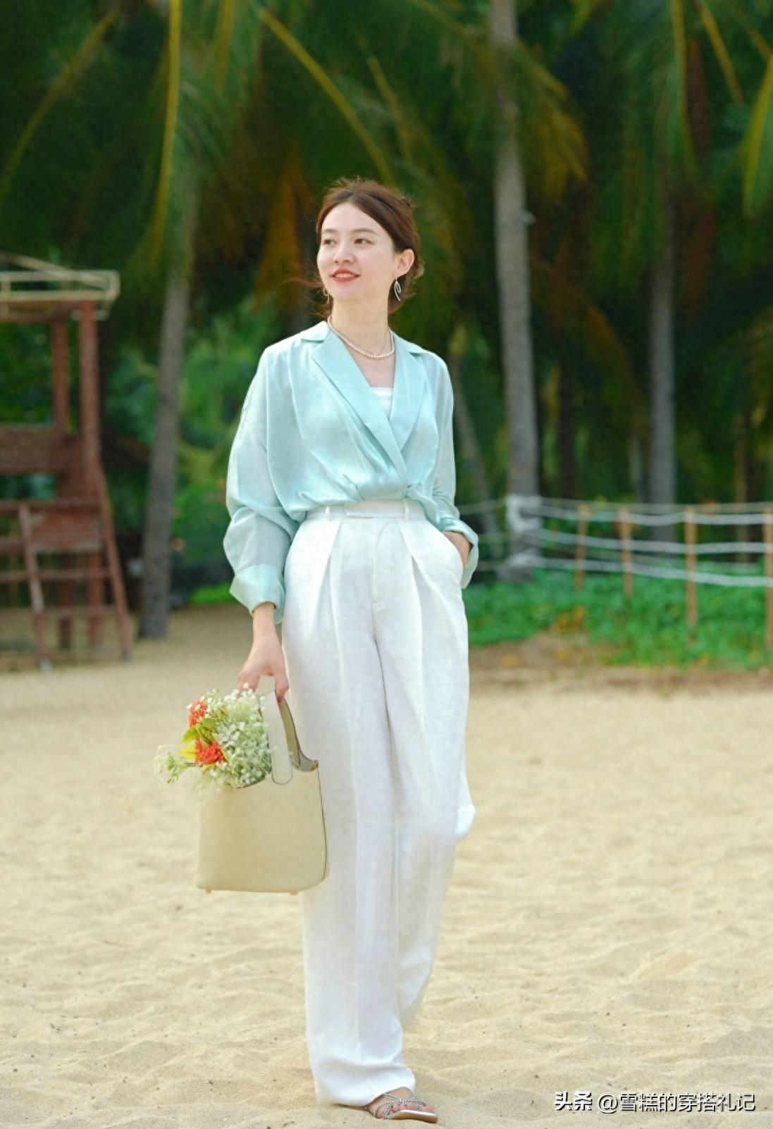 在春夏季節,面料材質的運用,一定要足夠舒適、透氣、順滑且細膩,既不能太薄太透,也不能過於厚實悶汗,優先選擇西裝料、牛仔褲、真絲和棉麻,纔是最機智的做法。