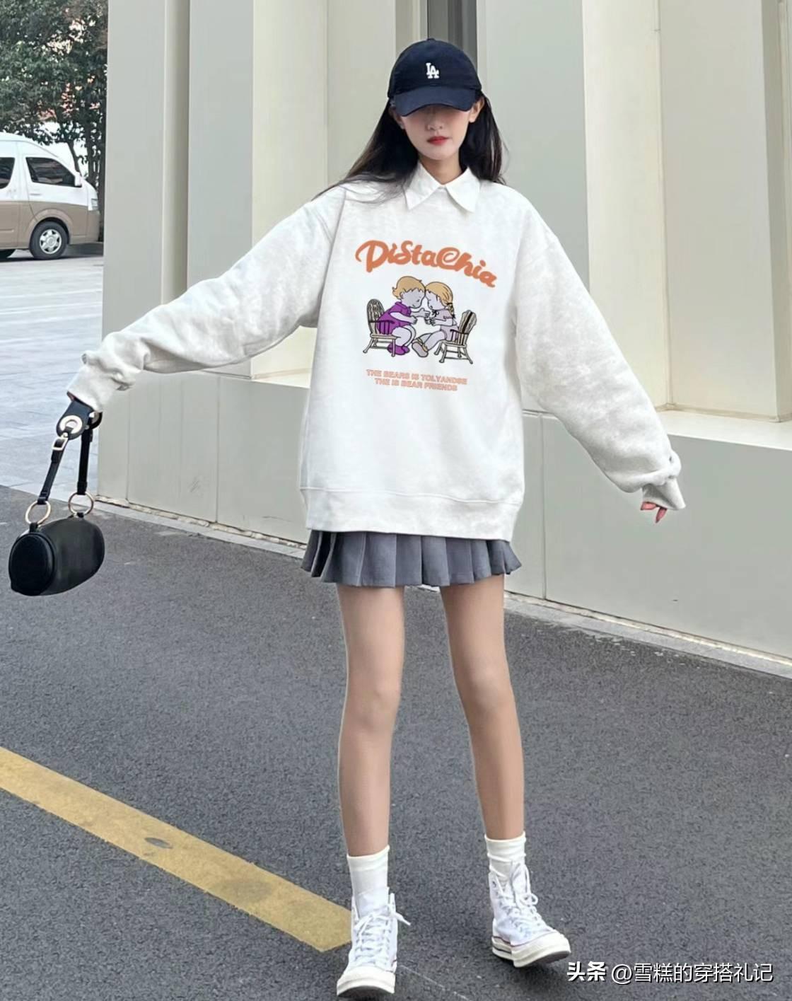 比較追求保險的女生,直接選擇基礎色的衛衣即可,黑白灰的衛衣,需要加上一些時髦的藝術感圖案,才能夠穿出更時尚的氣息。