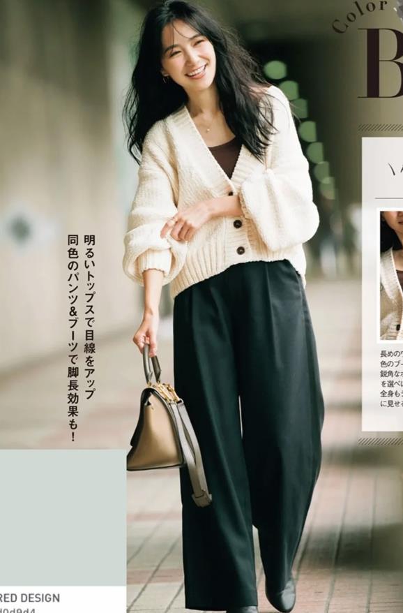 還有就是冷暖色、深淺色的對比,可以突顯出身材曲線,從而達到顯瘦的效果,比如淺色上衣+深色下裝,這樣的配色,是很適合下身胖的姐妹們。