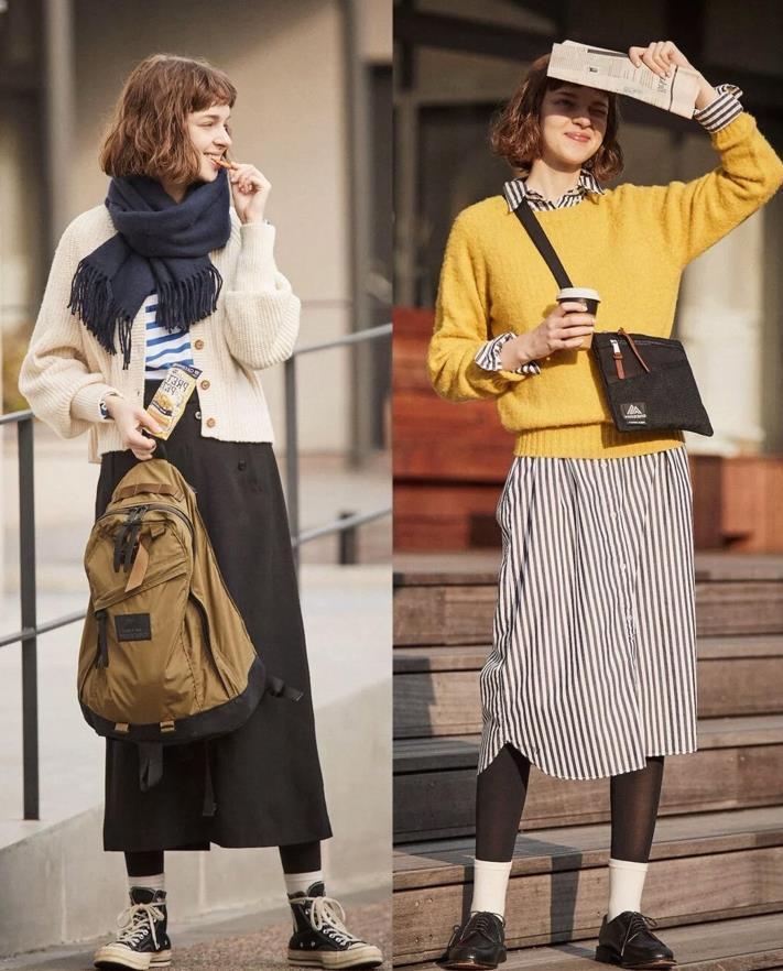 針織衫的質感很柔軟舒適,與a字半裙相配,可以讓你變得更加有魅力和氣質。