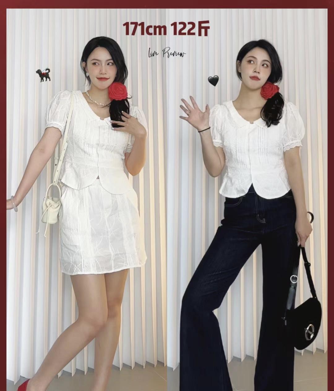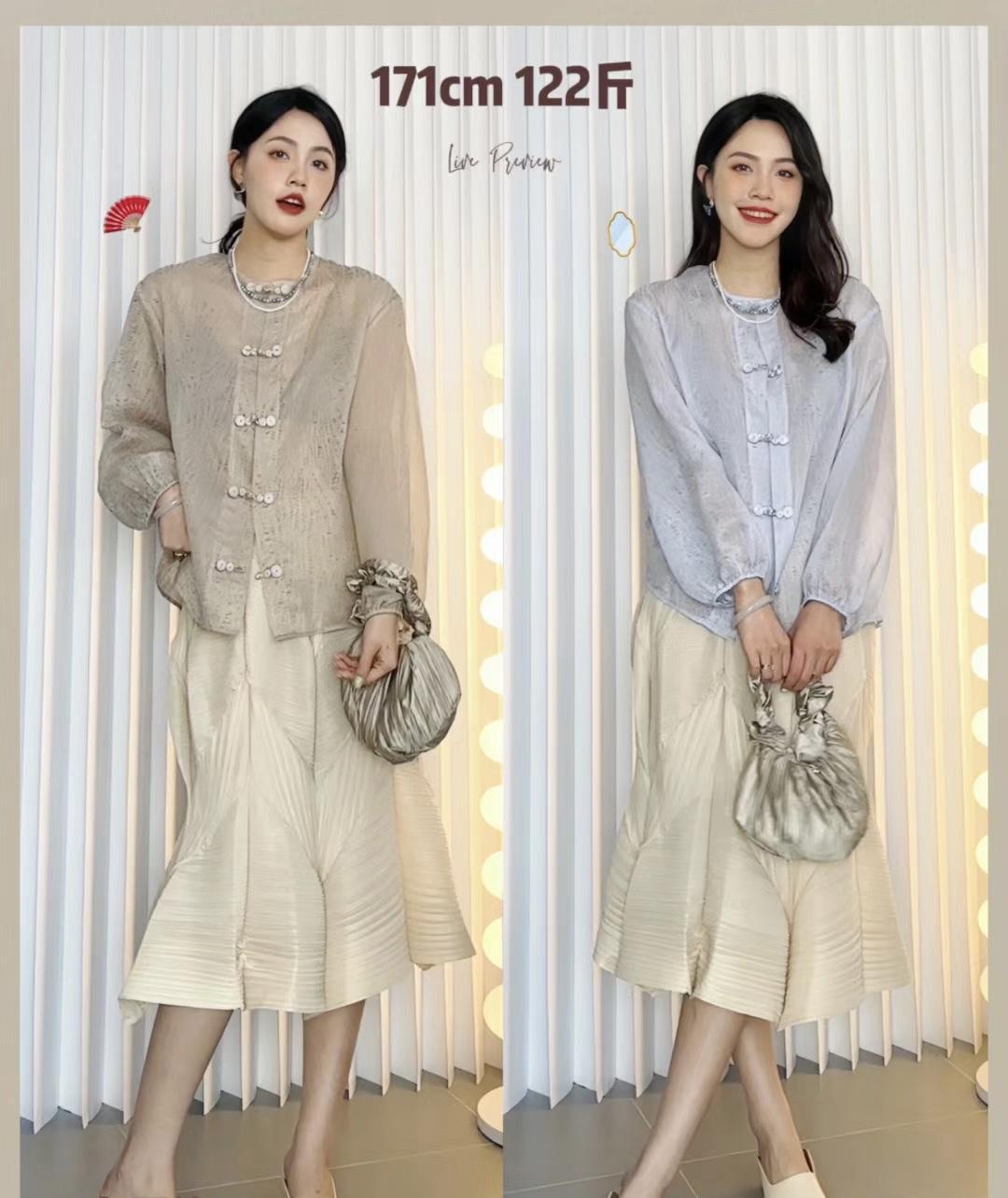 國潮風上衣可以不必那麼浮誇,輕薄的提花面料,盤扣的點綴,就更加內斂考究。搭配高腰的魚尾半身裙,優雅浪漫又分外迷人。