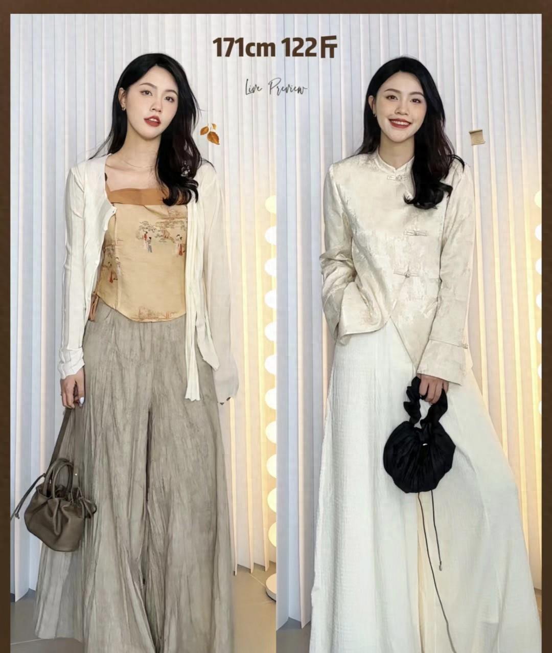 即便是梨形身材,也不需要過分的擔心。我們可以運用搭配的技巧,來表現出時尚的氛圍。比如提花元素的國風上衣,配高腰的闊腿褲、或者半身裙,都更加溫柔體面。