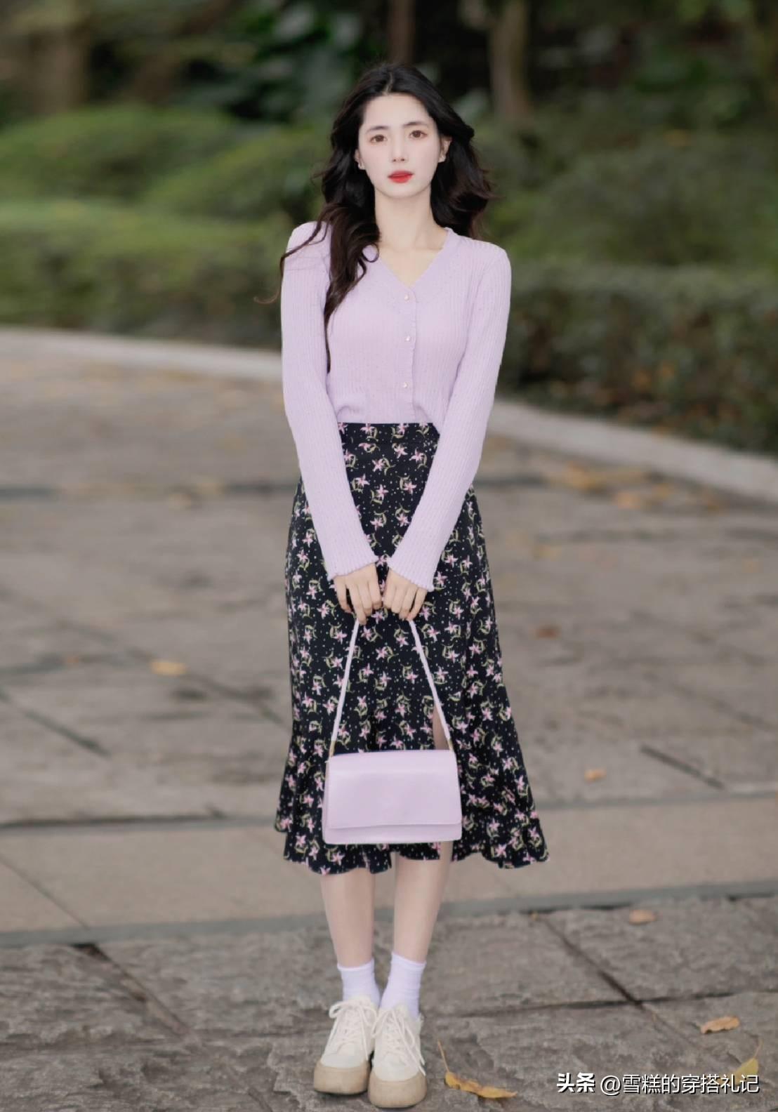 要說春季的浪漫主導者是什麼?那麼一定非碎花裙莫屬,穿上一條高腰款式的包臀碎花裙,搭配和印花同色系的針織衫,不僅可以營造出足夠溫柔的氣質,還能輕鬆勾勒腰臀曲線。