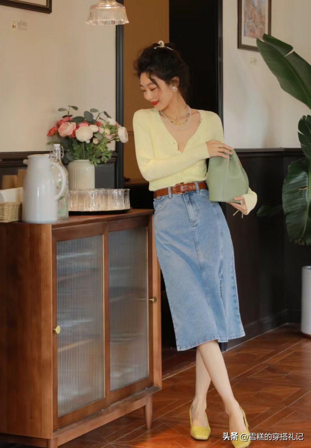 ④牛仔直筒半身裙——延伸感強、不挑身材