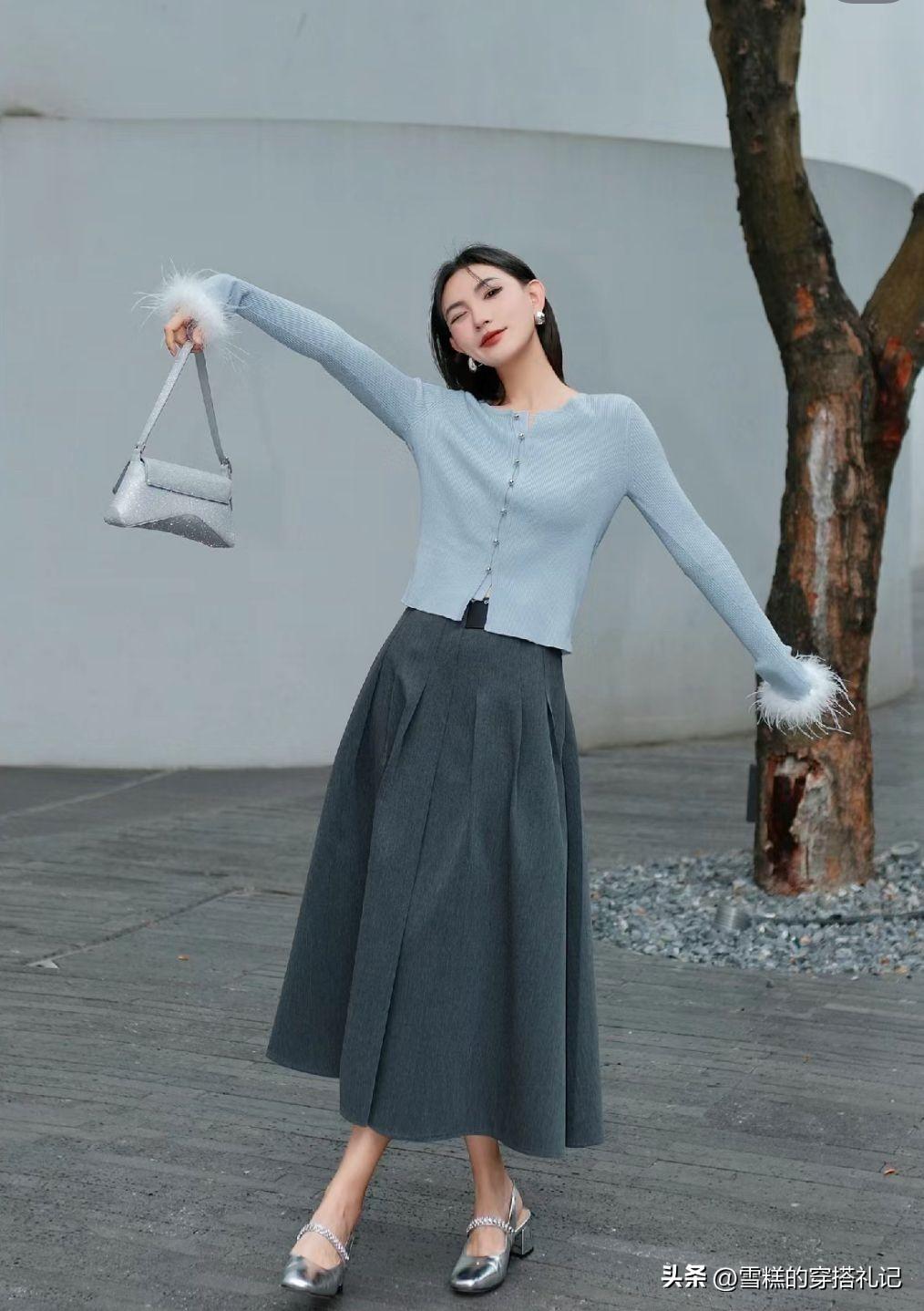 飽和度的霧霾藍,就很適合用於針織衫當中,不僅顯白襯膚,還特別溫柔;深灰色則可以用於半身裙當中,顯瘦又百搭,瞬間就能解決穿搭瓶頸。