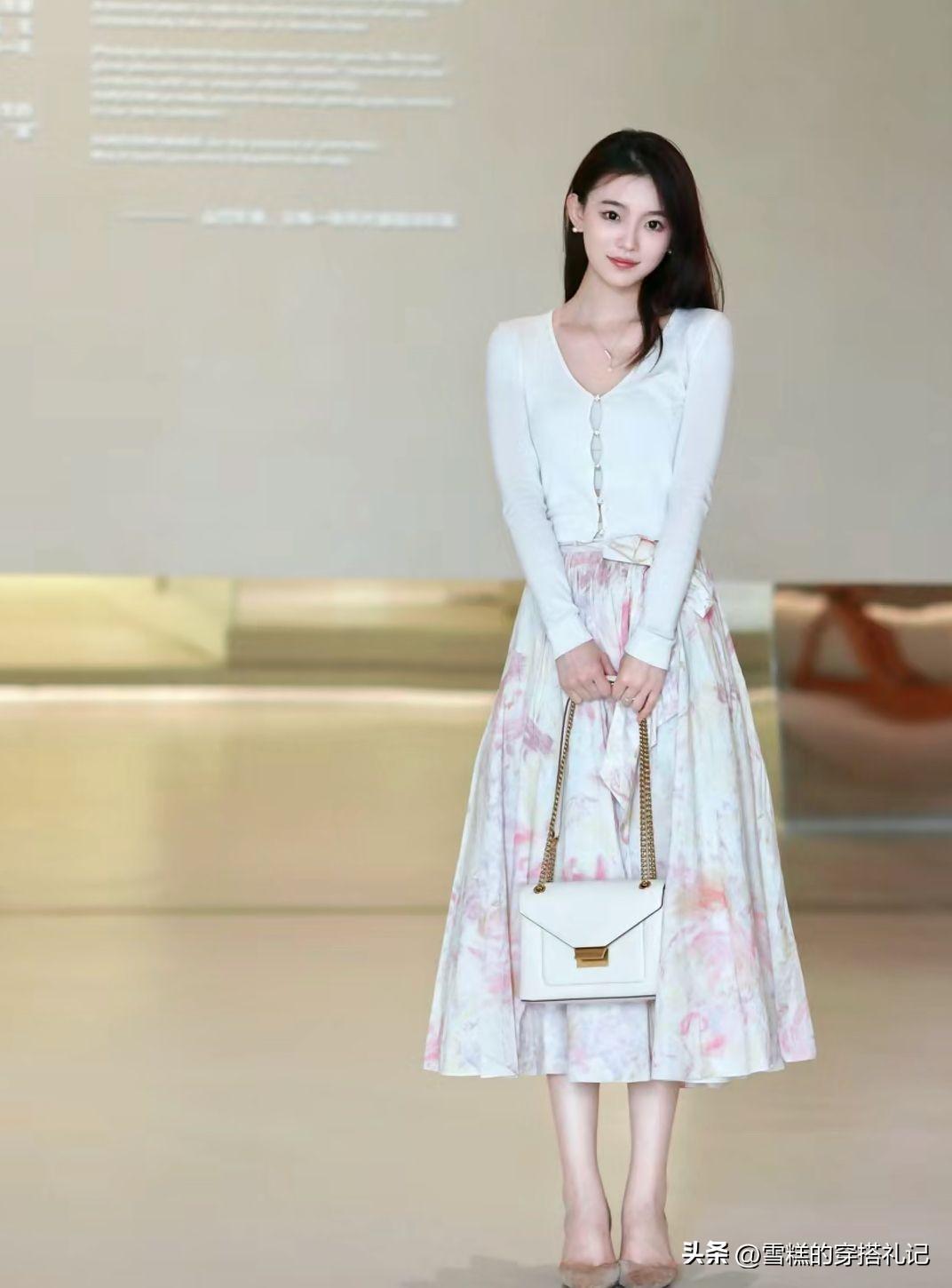 挑選碎花裙要慎重一些,碎花圖案不能過於密集繁瑣,色彩也要儘量簡約化,所以當上衣的顏色和碎花圖案相同的時候,整體看上去就會更加和諧。