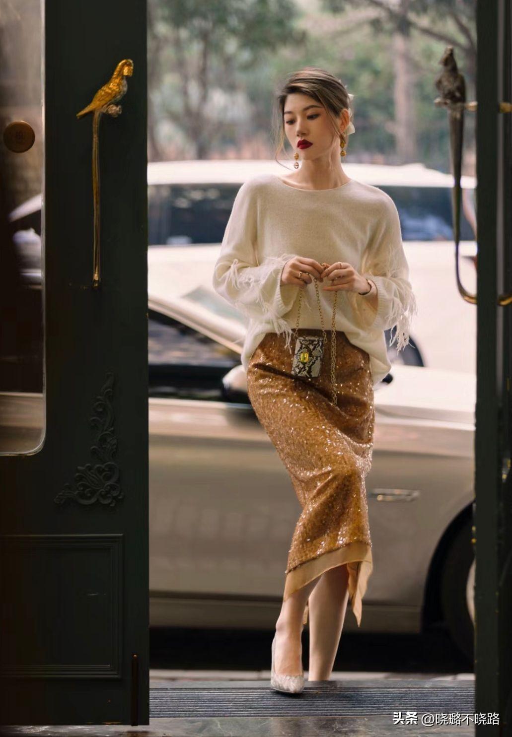 在選擇裙裝材質的時候尤其是比較偏長款的設計,那麼就一定要重視起來,第1種推薦給大家的像西裝牛仔又或者是尼龍這樣觸感就比較硬朗的面料,搭配出來的輪廓感走向非常明朗流暢,第2種的話則是垂感較重一些的醋酸以及薄款的針織系列。