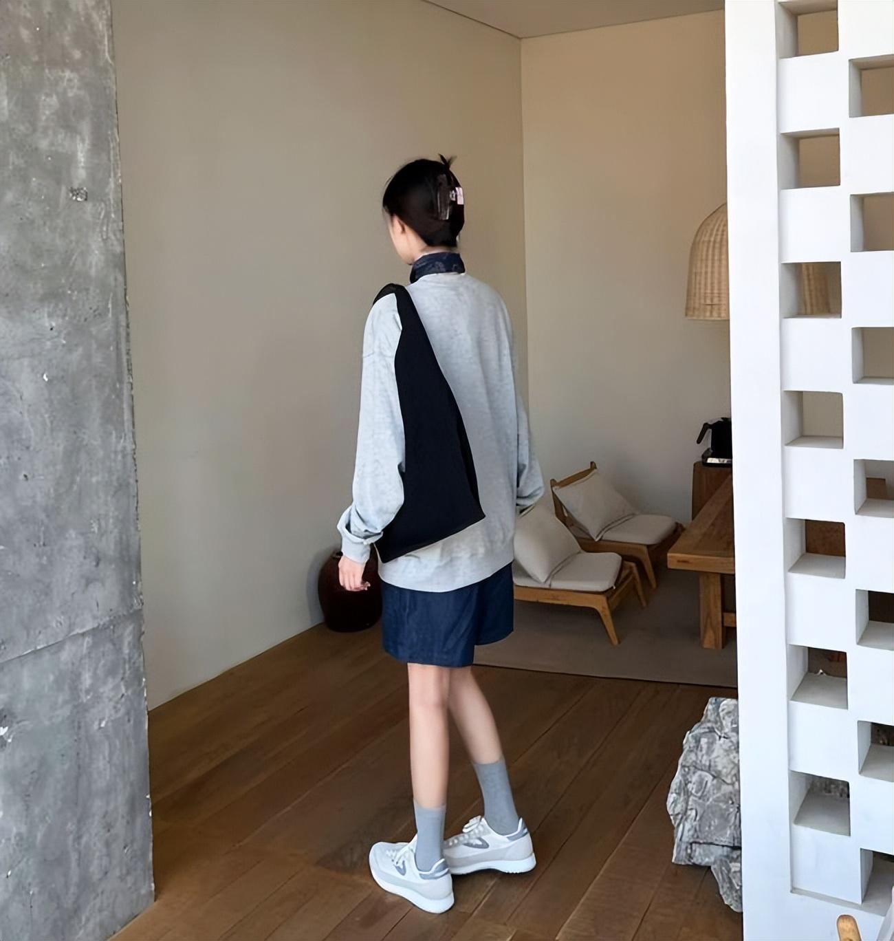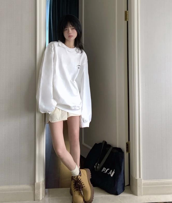 還有趙露思身上的這一套,也是很適合春夏季節的,黑白拼色長款衛衣,下裝是一條短褲,鬆弛感滿滿的裝扮,休閒舒適又輕鬆。最關鍵的是超級適合個矮小姐姐的。