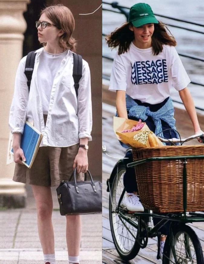 夏天的穿搭裏又怎能沒有白t呢?寬鬆版型的白色t,真的能穿得很輕鬆自在和舒適,對於小個子女生來說,也是超讚的。搭配牛仔短褲和運動鞋,休閒舒適的氛圍感就打造了。利用彩色的包包、帽子進行點綴,瞬間變得吸睛起來。