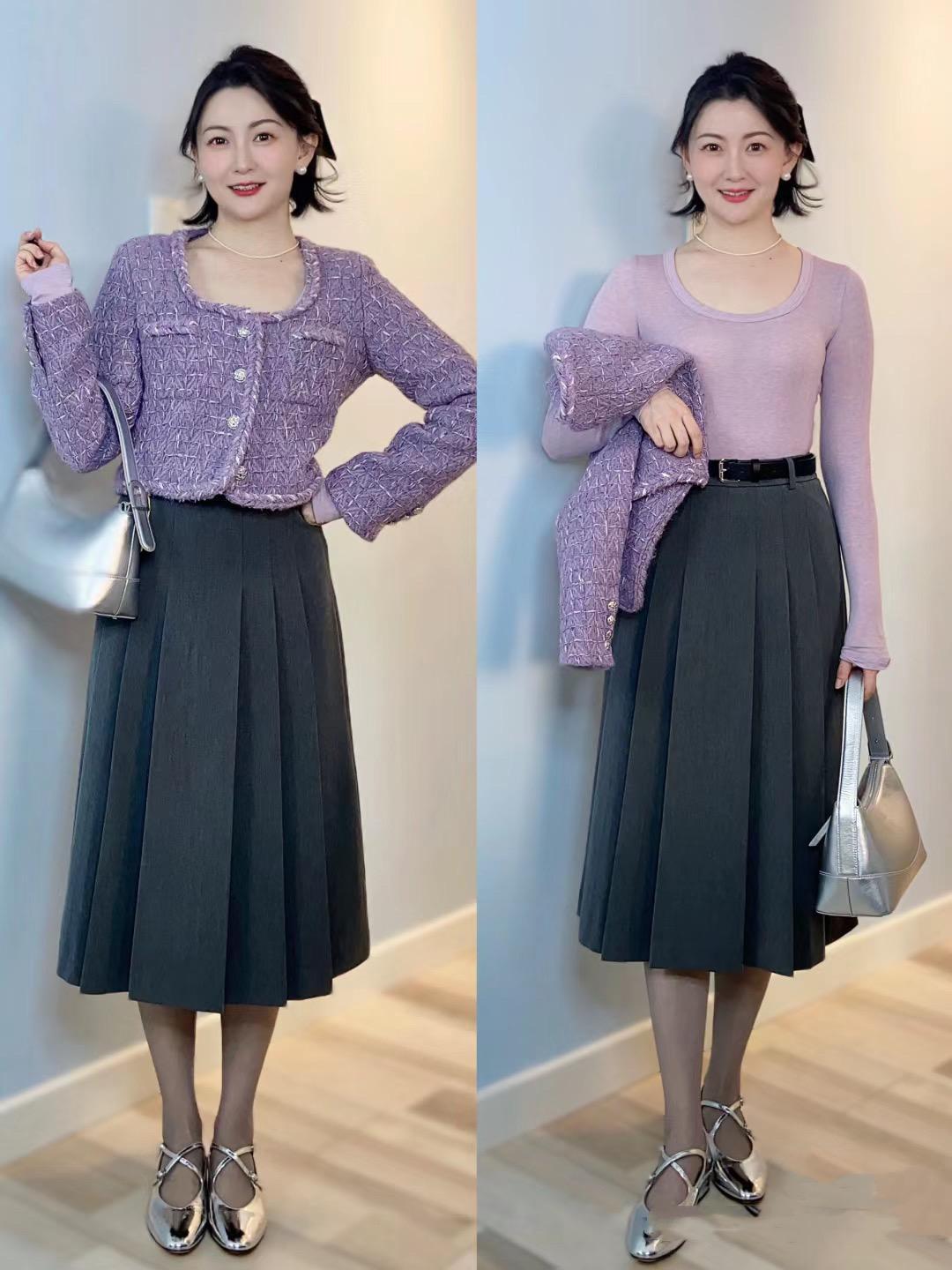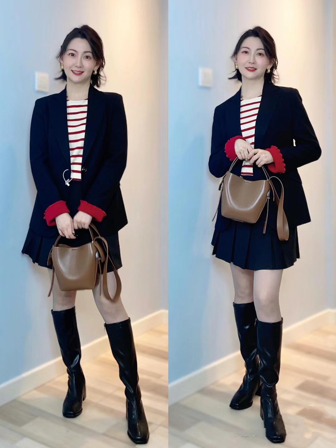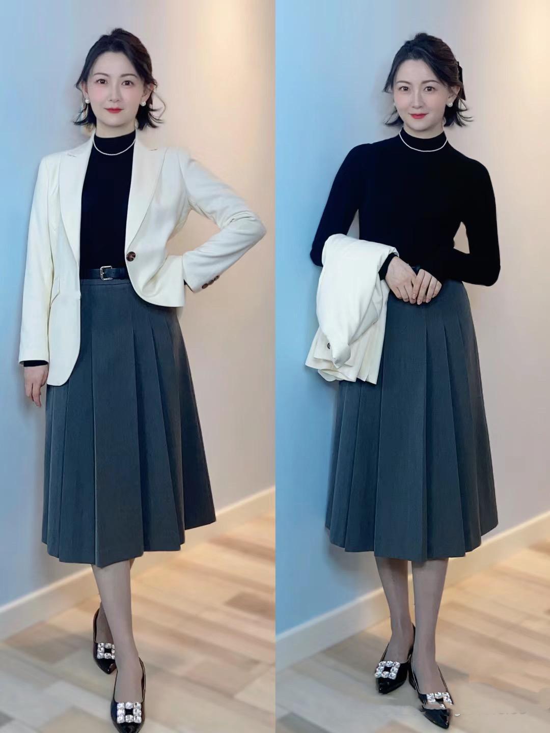 西服套裙的穿搭,總是很容易表現出高級冷豔的美。不管是日常通勤、還是休閒穿搭,都可以選擇這種西服套裝的穿搭。