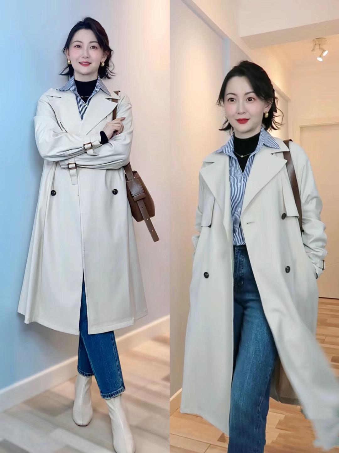 想這種基礎款的風衣外套,搭配了黑色打底衫、直筒半身裙,如果覺得太過乏味。我們可以在頸部疊搭小絲巾的修飾,看似不起眼的小絲巾,卻可以讓我們的穿搭更加洋氣。