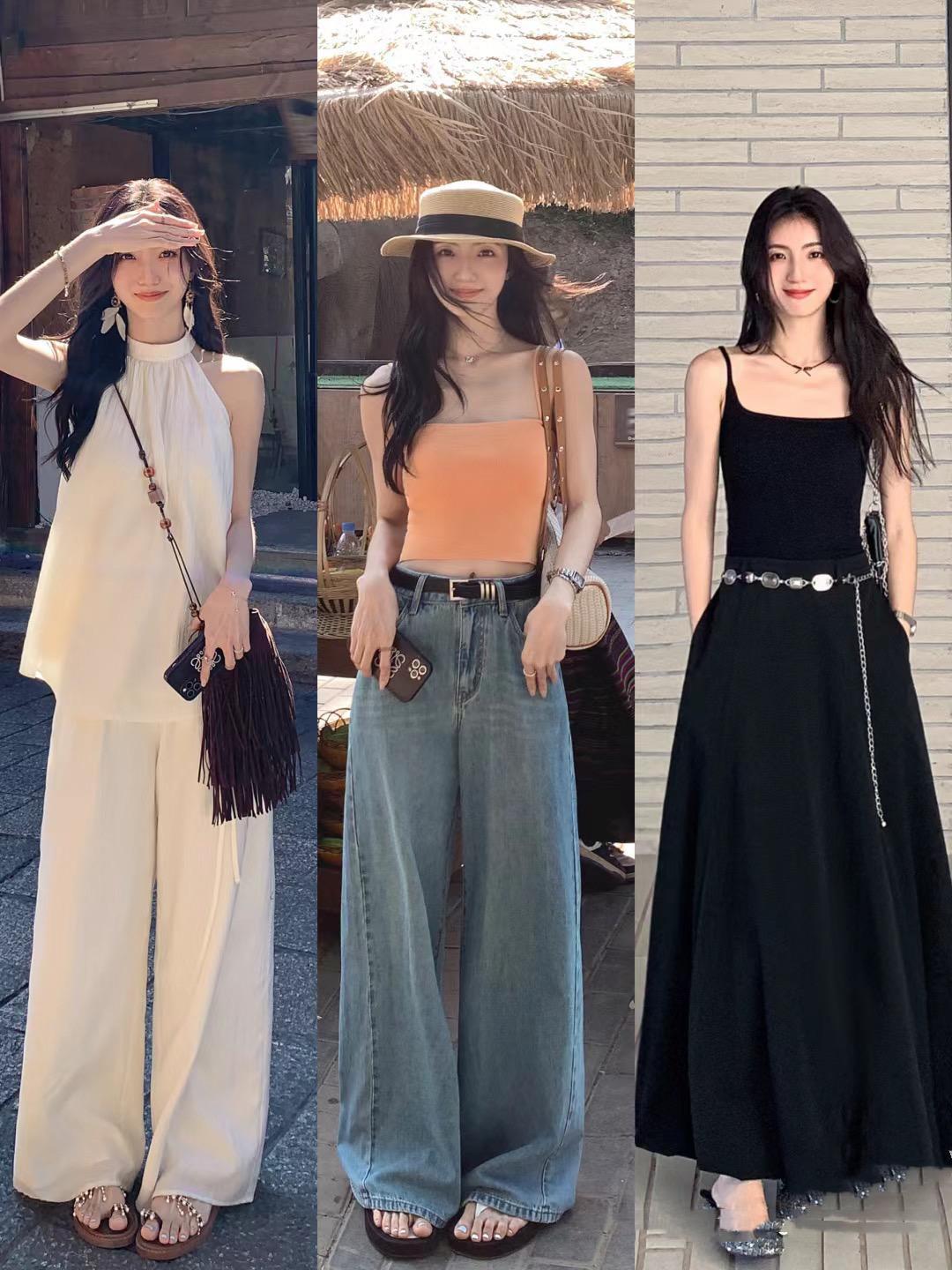 這種小背心的露膚面積比較大,對於肩頸部線條的要求也更加嚴苛。如果是身材肉感比較強、或者體型厚重的中年女性,可以搭配一件罩衫、或者小外套,以外鬆內緊的方式營造時尚感。