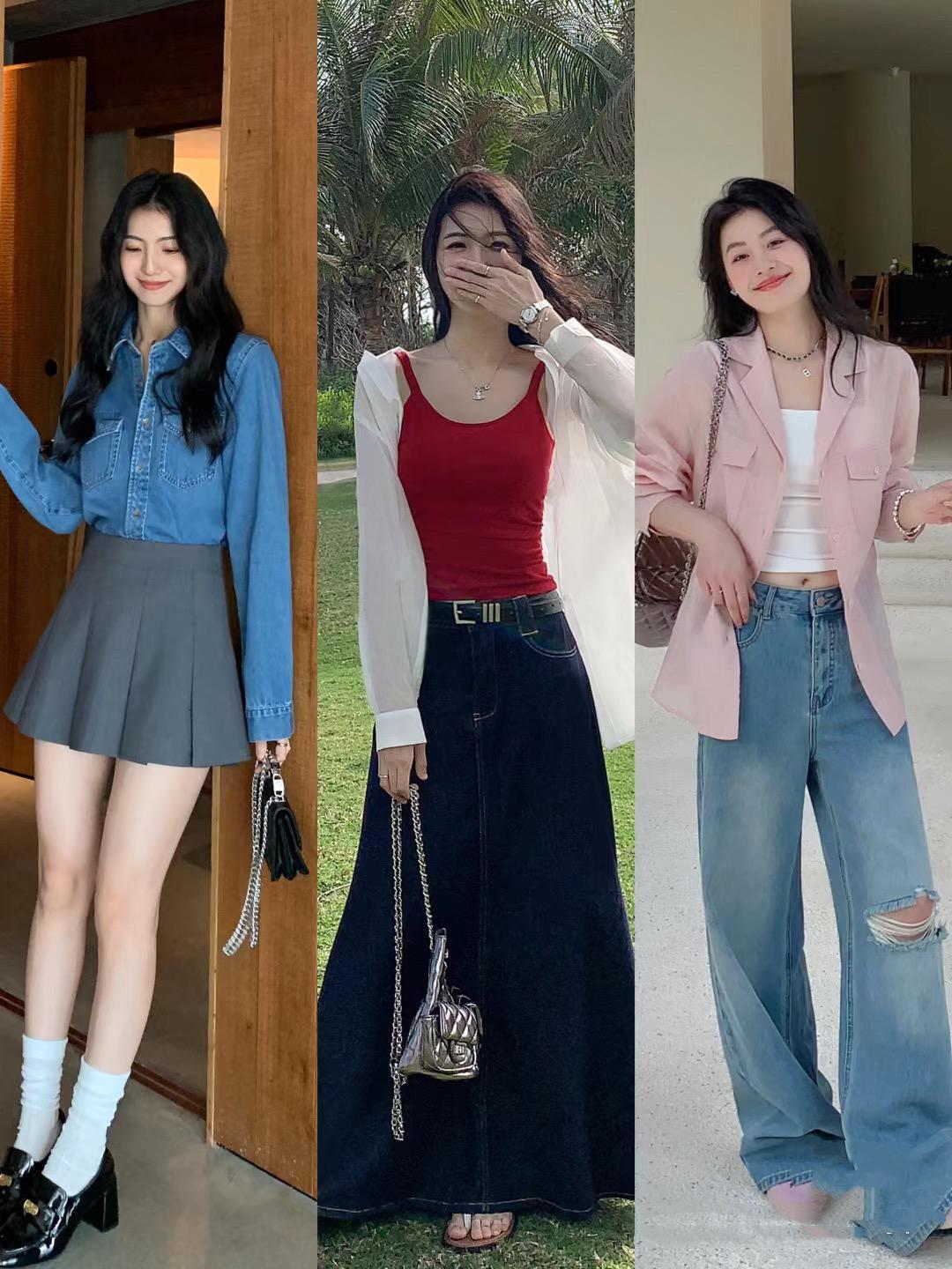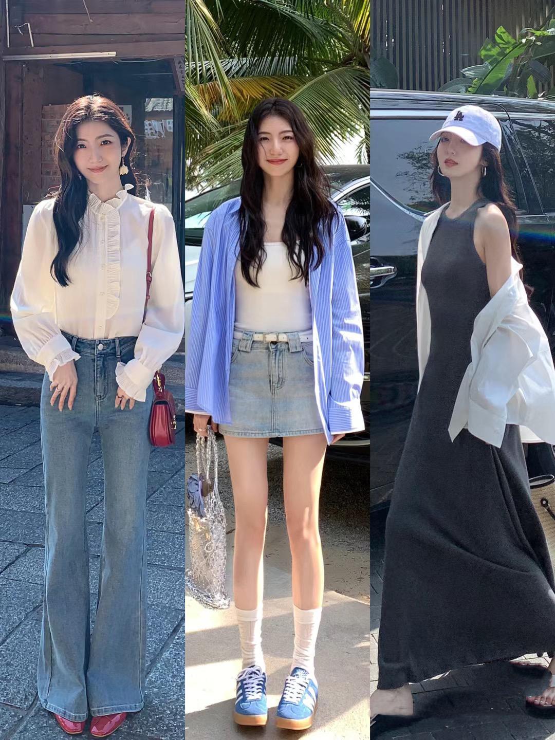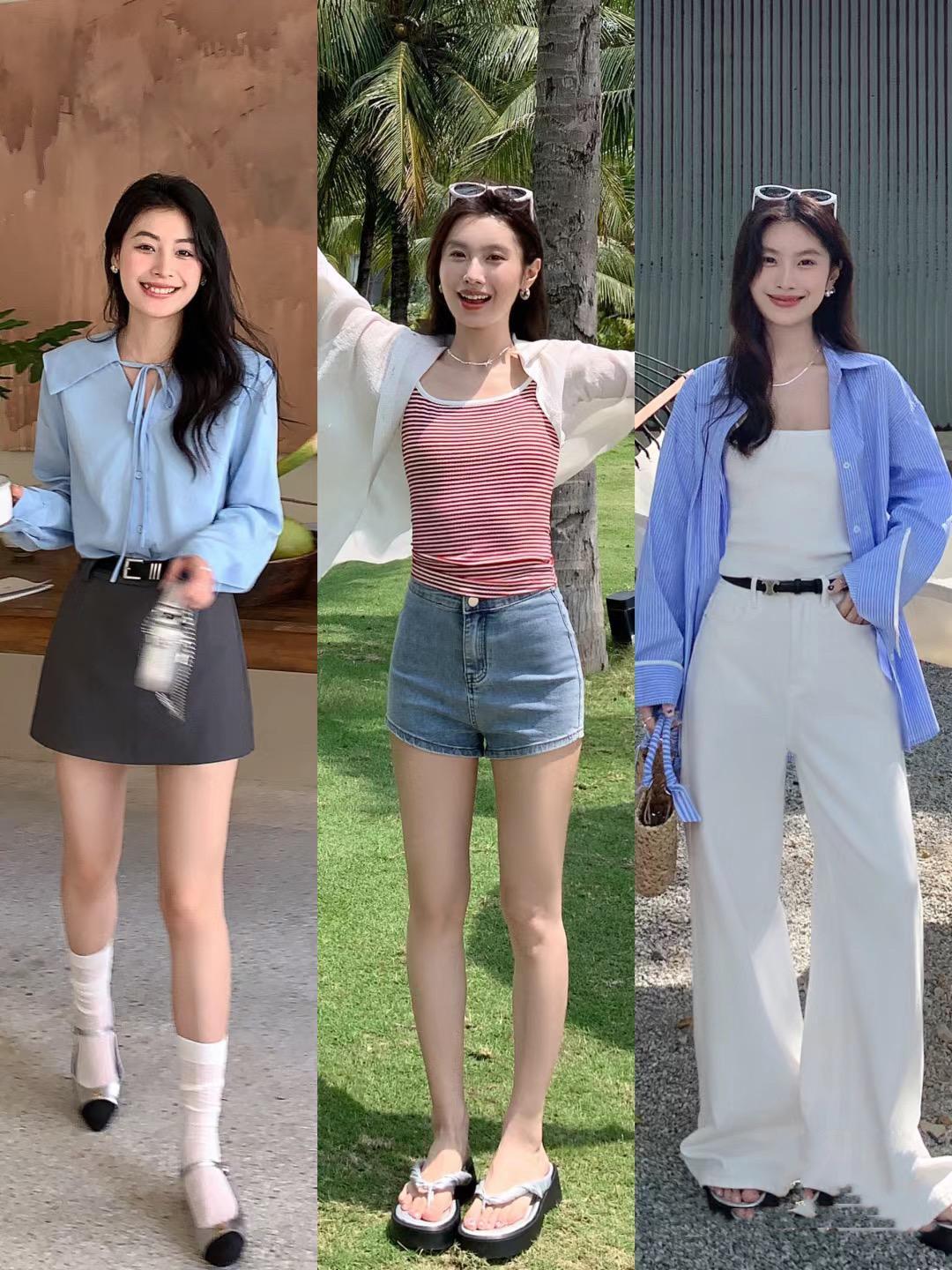 寬鬆且輕薄的襯衫,我們可以配修身的吊帶上衣來穿着。修身的吊帶上衣,可以配寬鬆的淺藍色襯衫,外鬆內緊的搭配方式,大方又顯瘦,配牛仔短裙也很顯腿長。