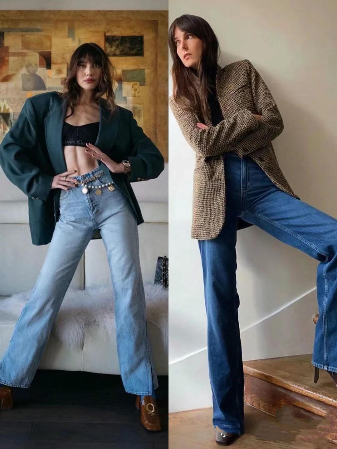 建議大家穿着西服外套的時候,還是配面料挺闊的牛仔褲來穿着。這種簡約又高級的穿着方式,不僅修飾腿型、也塑造出高級之美。面料挺闊、帶有筋骨感的牛仔褲,更顯端莊大氣。