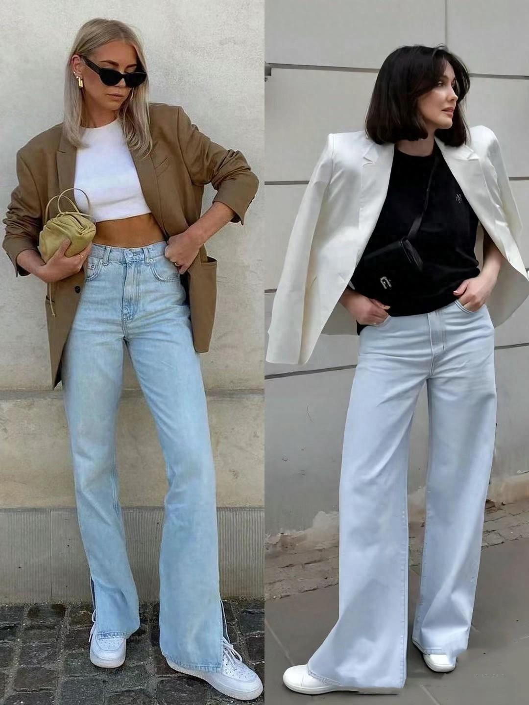 直筒牛仔褲最適合修飾腿型上的不足了,稍微有一點厚重的腿型、或者大腿粗、小腿粗、以及腿型不好的O型腿、X型腿、羅圈腿,都可以通過直筒牛仔褲來掩蓋,表現出筆直挺拔。
