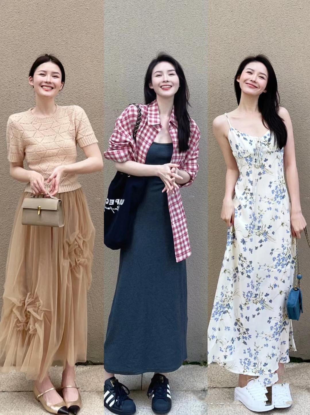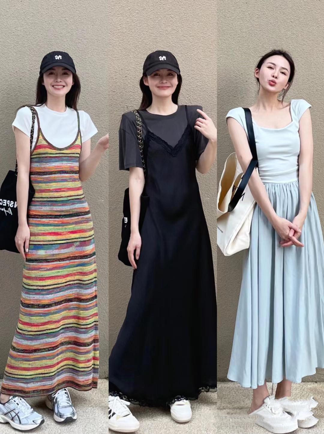 鬆弛感穿搭,會給人一種隨性自然的美,不僅大方提氣質還很顯年輕。寬鬆一點的吊帶連衣裙,疊搭基礎款T恤,就能自然弱化年齡感。