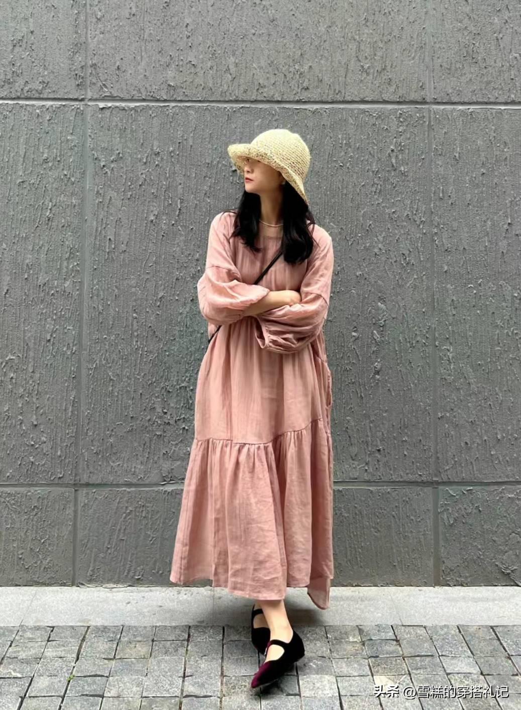 想要美的輕而易舉,那麼挑選的裙子風格就不能太性感或者可愛,換成慵懶風的無腰線連衣裙,採用細膩柔軟的面料增添垂墜感,搭配平底鞋纔會顯得更大氣。