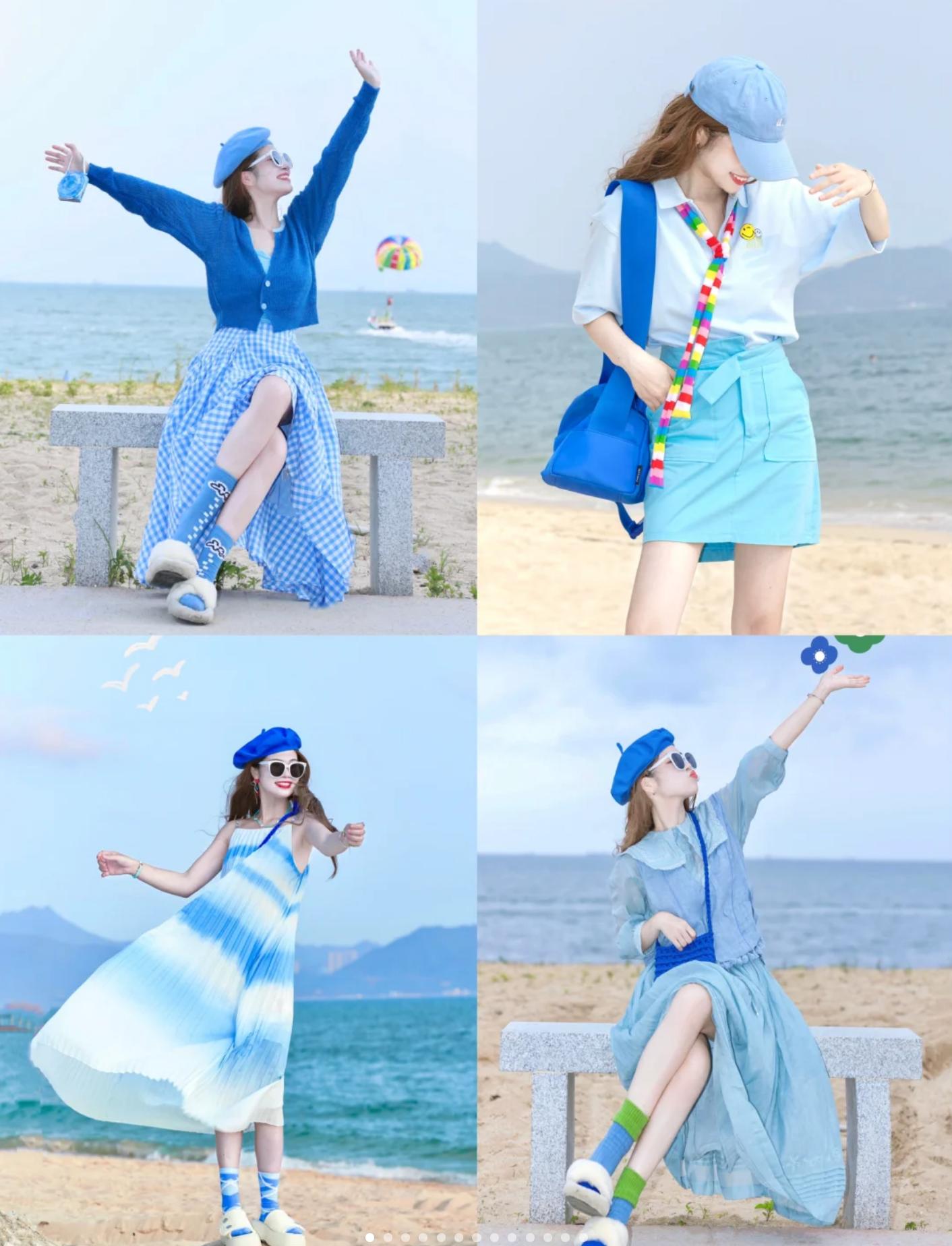 ②淡藍色:不要太深的藍色,會顯老,這種比較淡的藍色同樣具有收斂效果,從搭配的角度看更加溫和且高級。比如淡藍+深藍,深藍+白色,牛仔褲+針織衫,襯衫+牛仔褲。