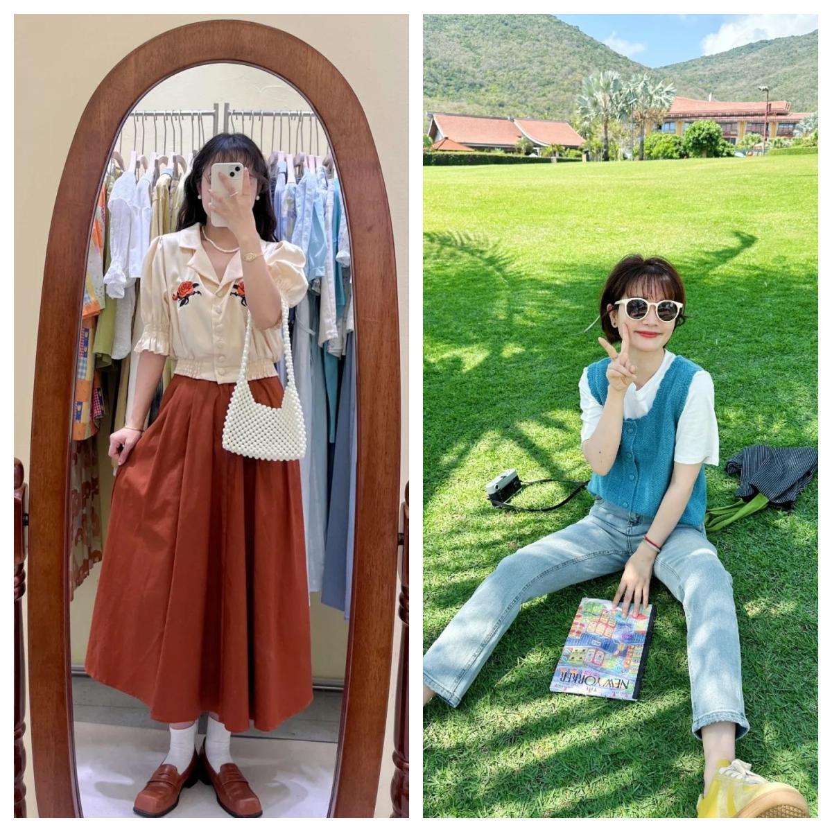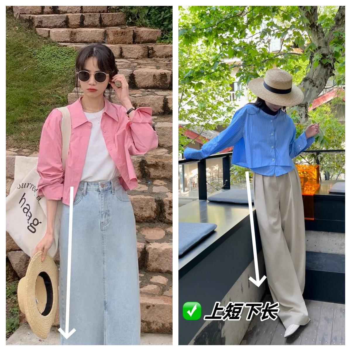 ④上短下長:短款上衣可以自然露出高腰褲或裙的腰線部分,即便是簡單的T恤或襯衫,只要下襬不超過腰部,就可以輕鬆打造高腰線。